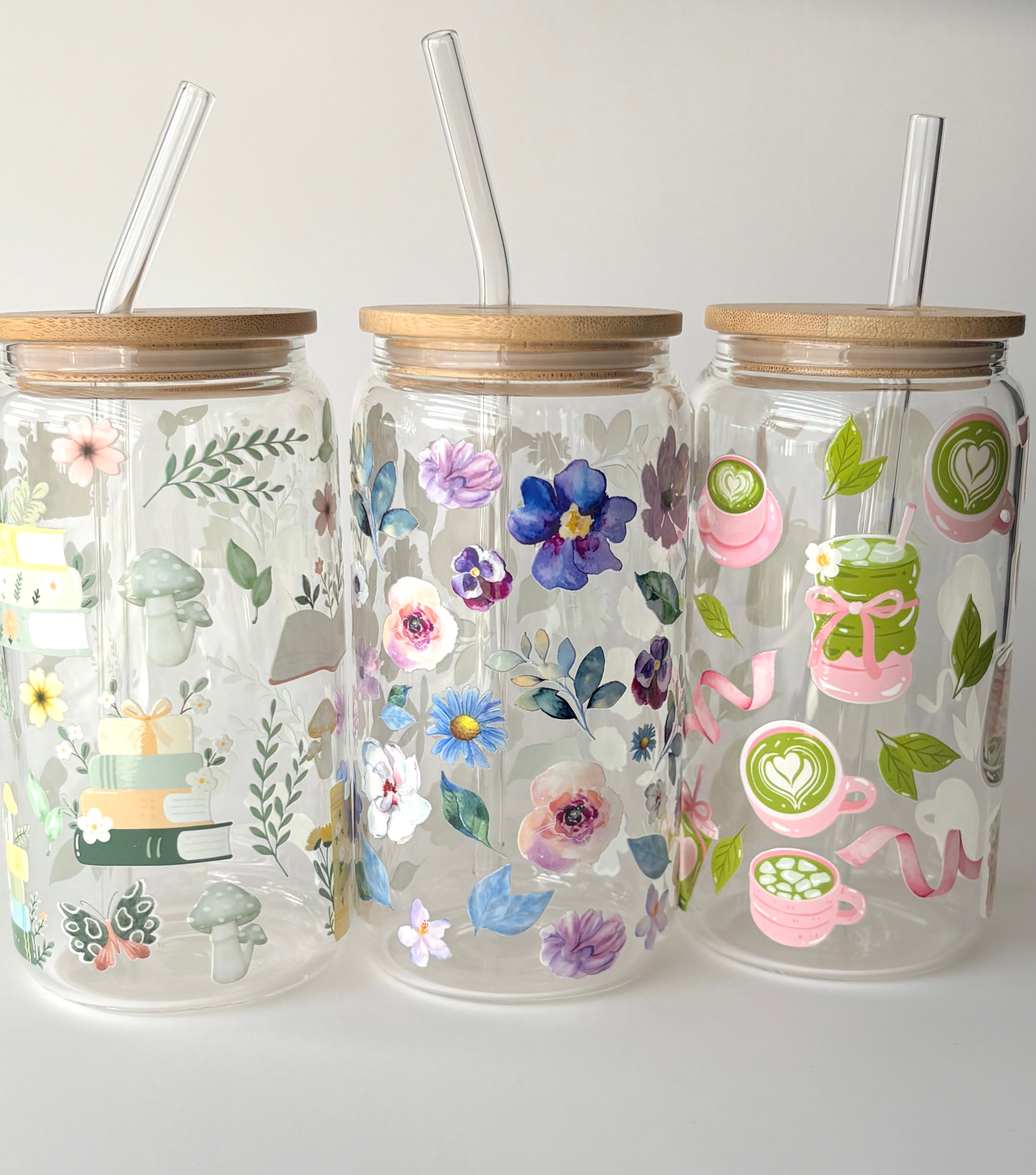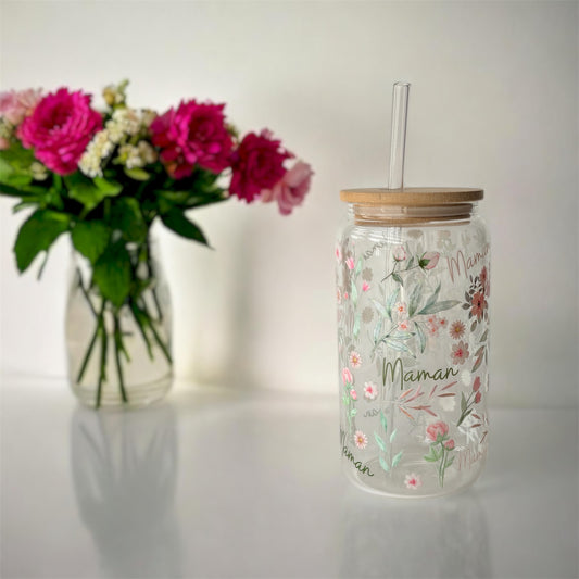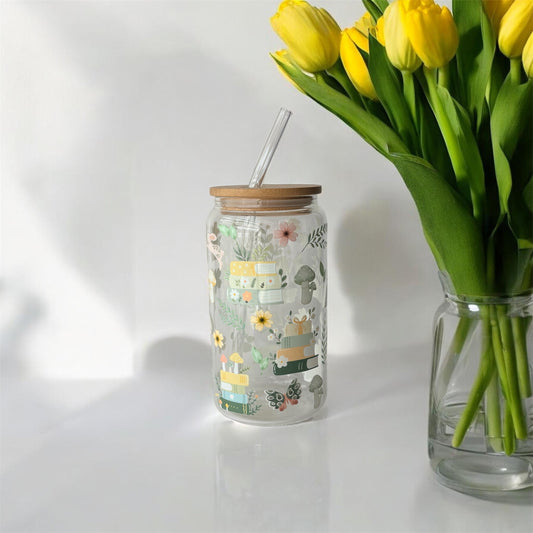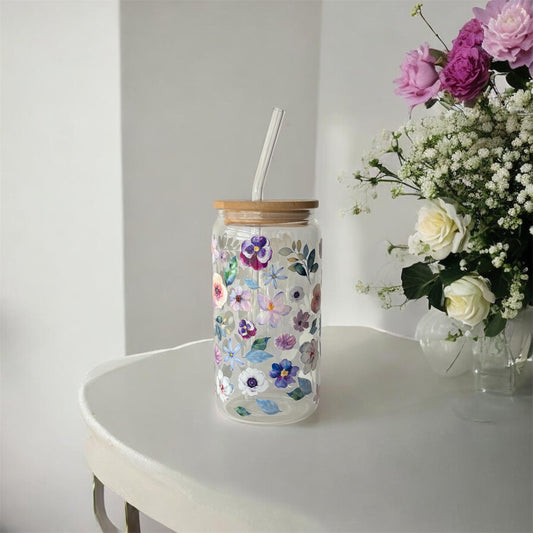 Tasse en verre avec couvercle et paille (17 oz) - Jardins en fleurs 🌸🌼🌺