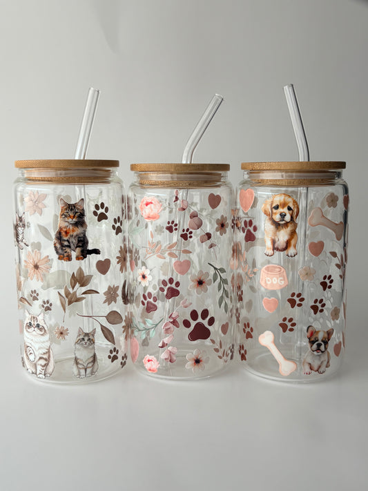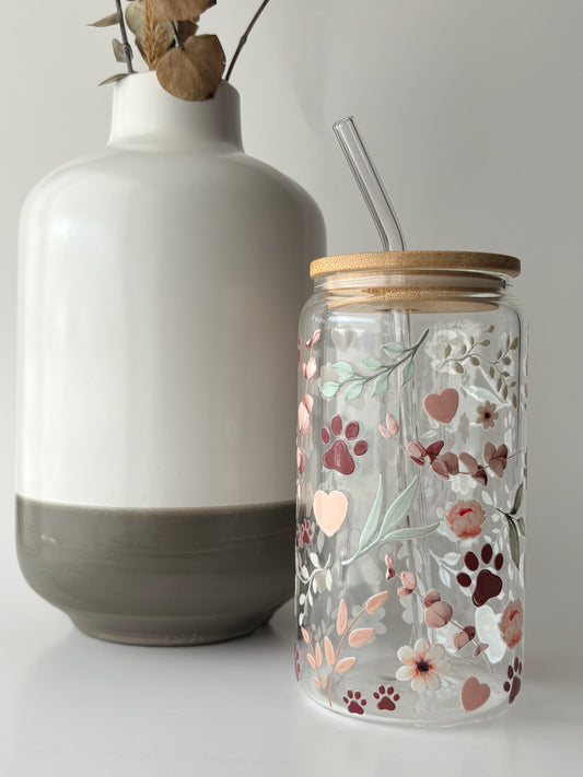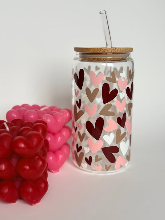 Tasse en verre avec couvercle et paille (17 oz) - Pluie de coeur
