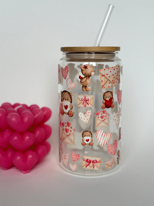 Tasse en verre avec couvercle et paille (17 oz) - Love