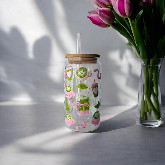 Tasse en verre avec couvercle et paille (17 oz) - Douceur de printemps 🌼🌿💛