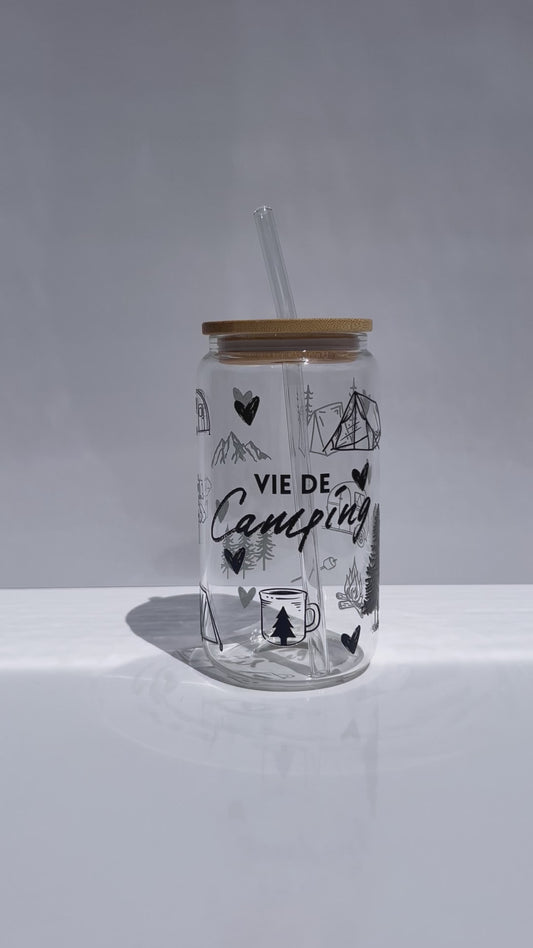 Tumbler en verre avec couvercle et paille (16 oz) - Camping 🔥