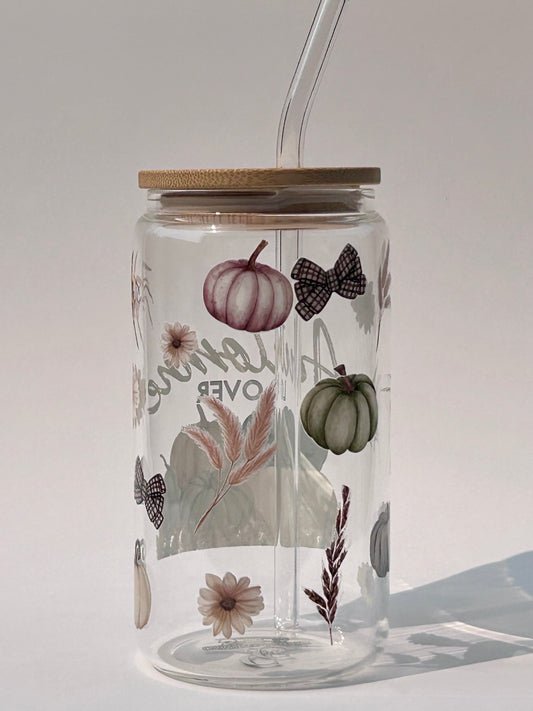 Tumbler en verre avec couvercle et paille (16 oz) - Autumn vibes đ
