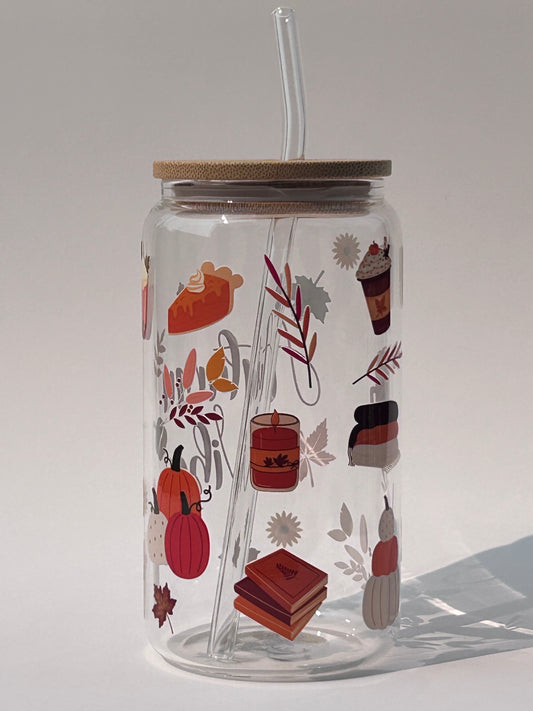 Tasse en verre avec couvercle et paille (17oz) - Autumn vibes đ