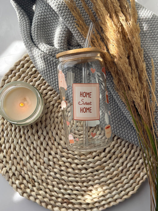 Tumbler en verre avec couvercle et paille (16 oz) - Home sweet home🧦🧶🫖Prix habituel $29.99 CADPrix habituelPrix unitaire par-