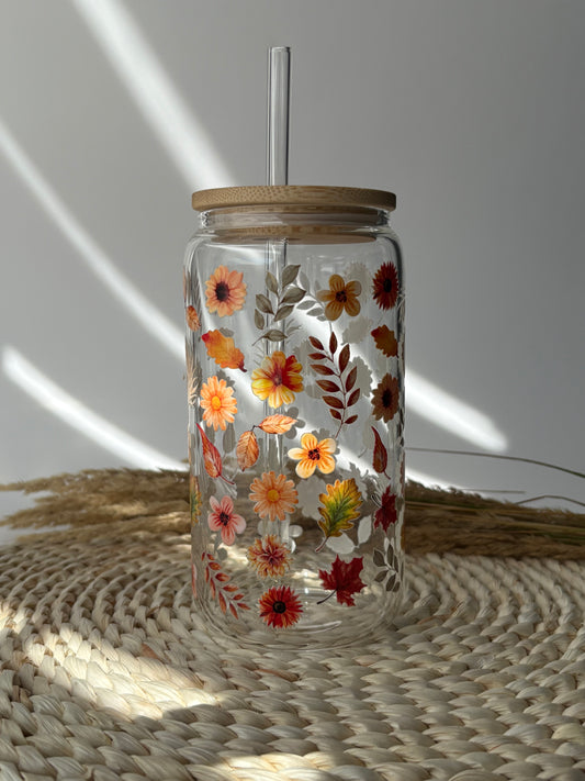 Tumbler en verre avec couvercle et paille (16 oz) - Jardins d'automne 🌻🌾🍂Prix habituel $29.99 CADPrix habituelPrix unitaire par-