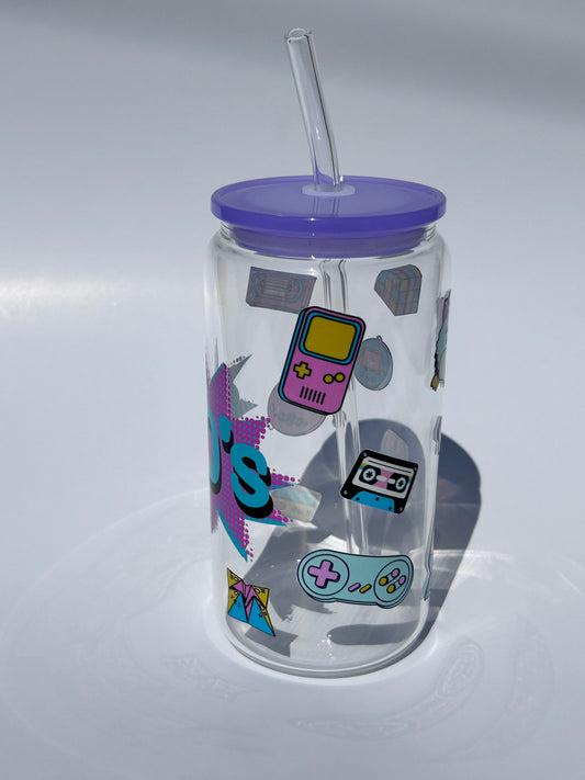 Tumbler en verre avec couvercle et paille (16 oz) - 90’s 💜