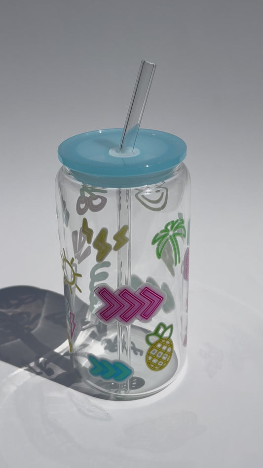 Tumbler en verre avec couvercle et paille (16 oz) - Été colorée 🌈
