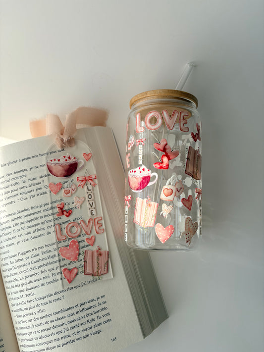 Tumbler en verre avec couvercle et paille (16 oz) - Romance 💌