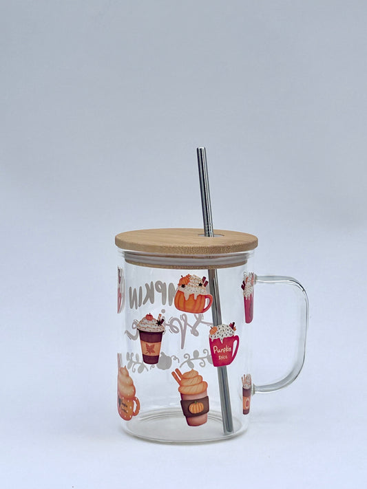 Tasse en verre avec couvercle et paille (17 oz) - Pumpkin spice 🎃