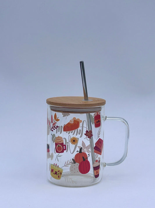 Tasse en verre avec couvercle et paille (17oz) - Automne Lover 🌾