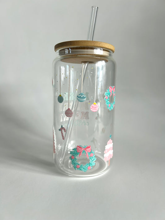 Tumbler en verre avec couvercle et paille (16 oz) - Merry Christmas 🎅🏻