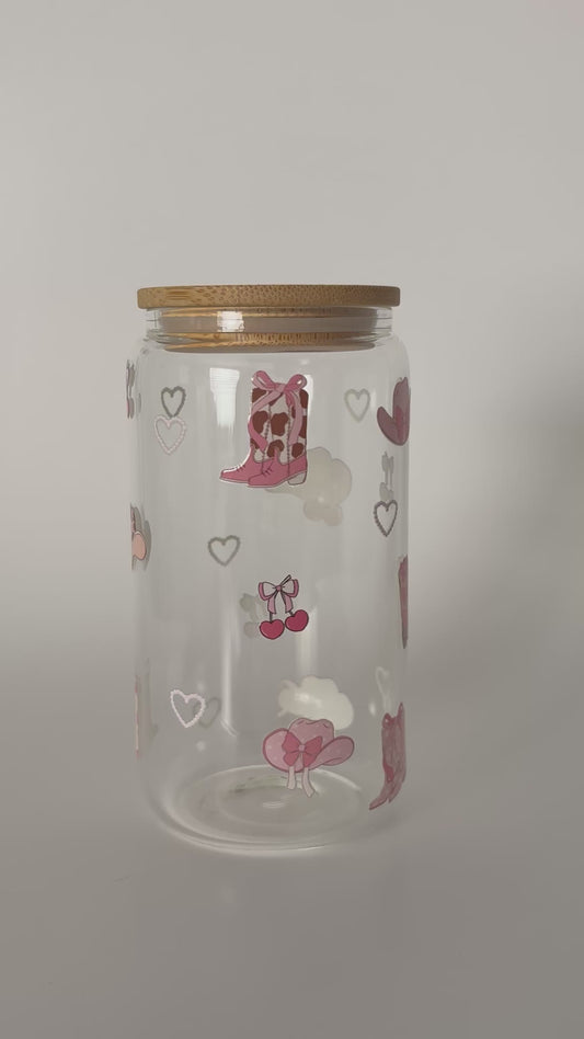 Tumbler en verre avec couvercle et paille (16 oz) - Cowgirl đ€ đ©·