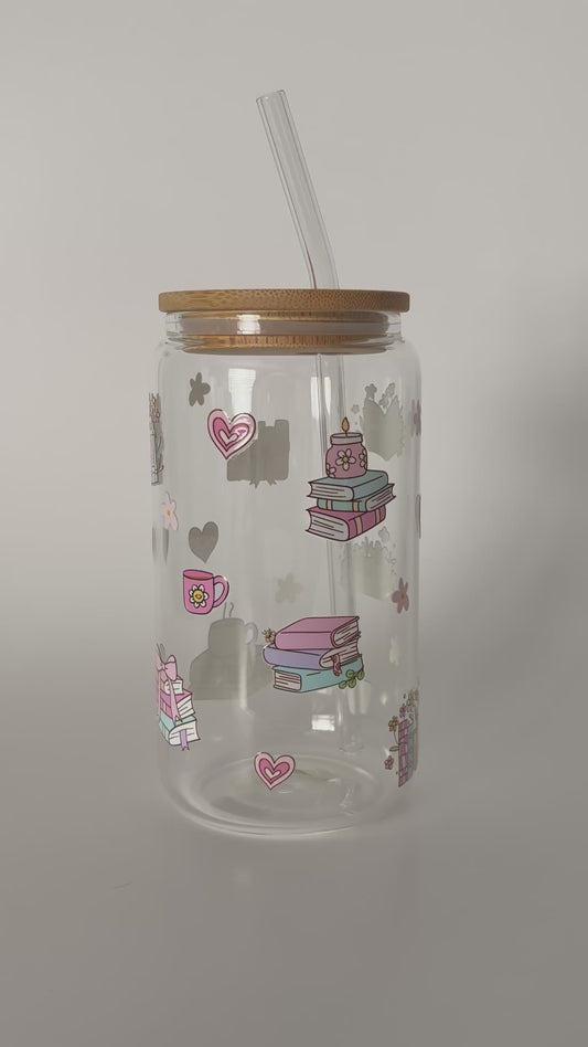 Tumbler en verre avec couvercle et paille (16 oz) - Romance đ