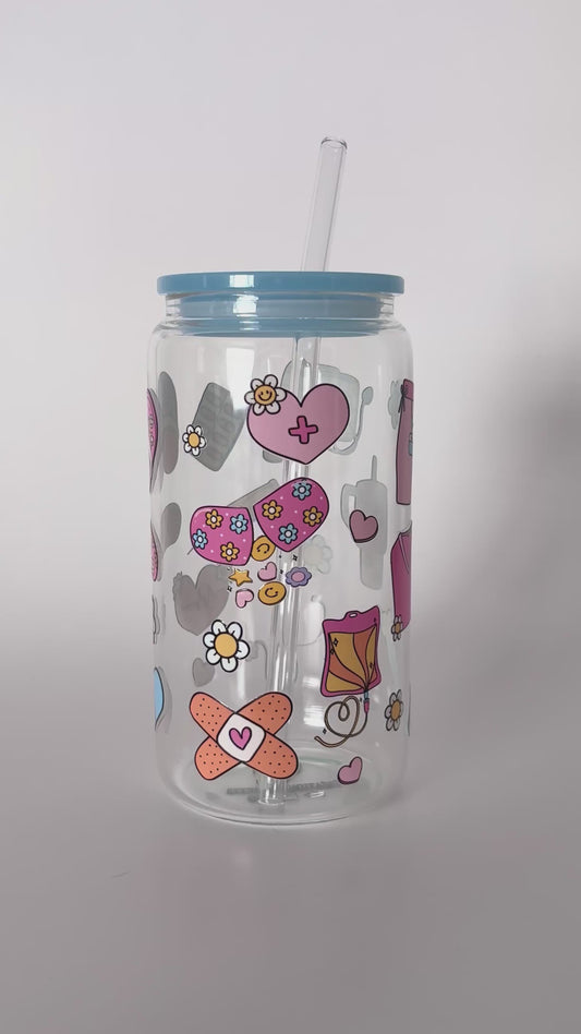Tumbler en verre avec couvercle et paille (16 oz) - HĂŽpital Life đ©ș