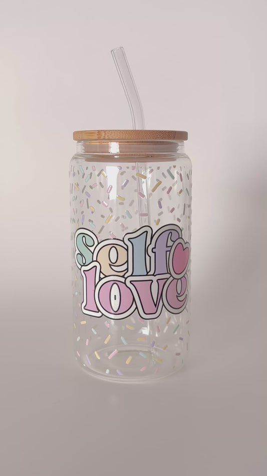 Tumbler en verre avec couvercle et paille (16 oz) - Self love quotes đč
