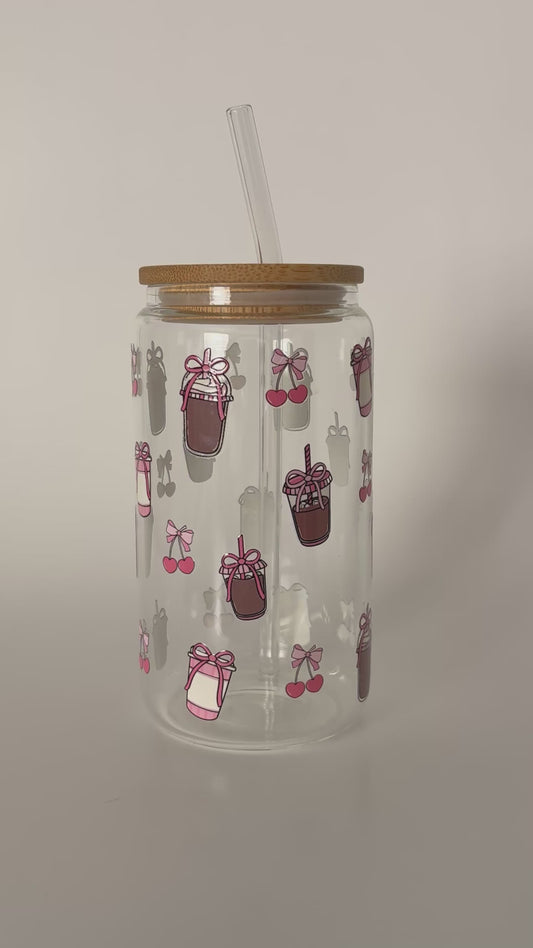 Tumbler en verre avec couvercle et paille (16 oz) - Petite douceur đ