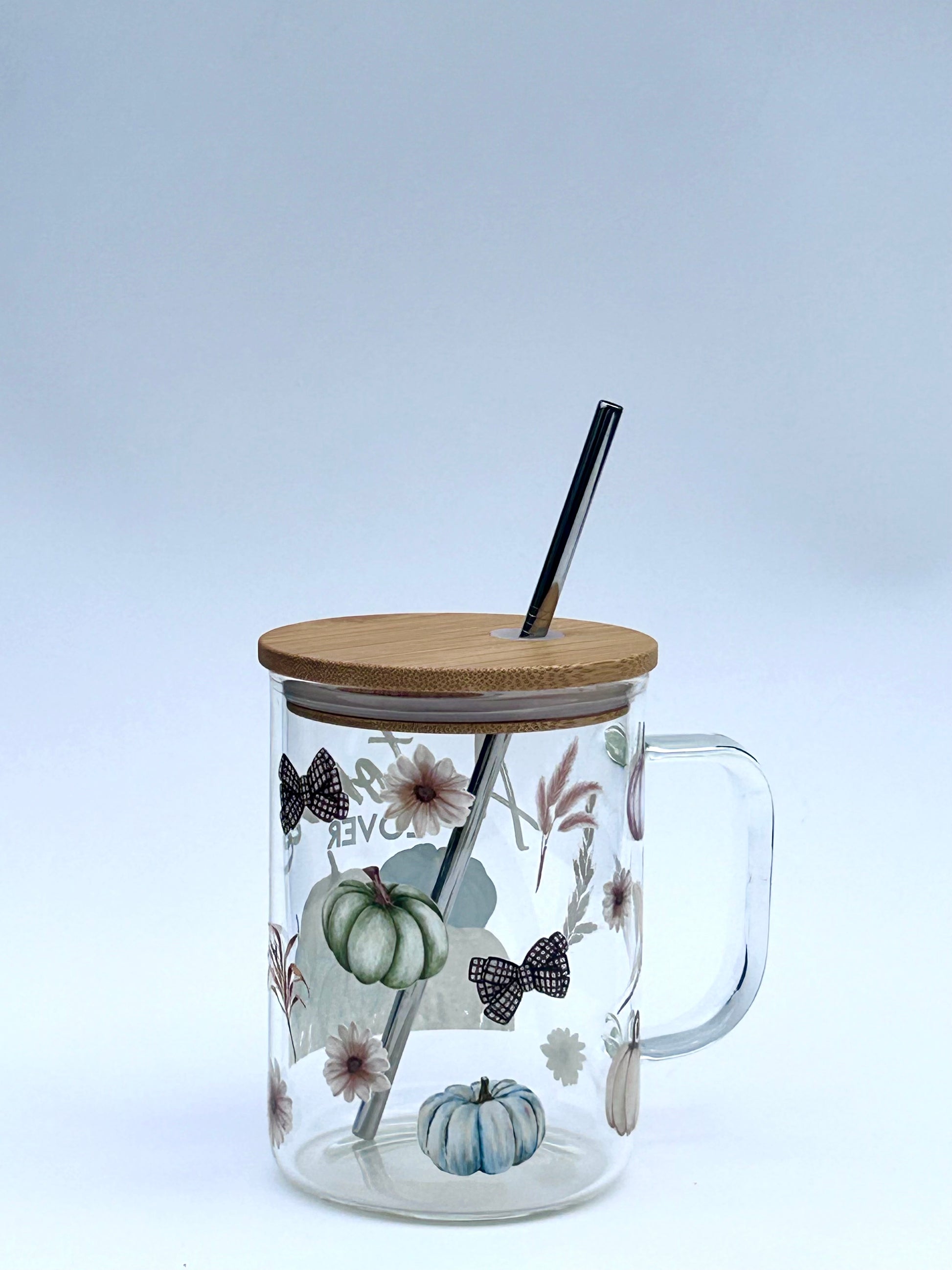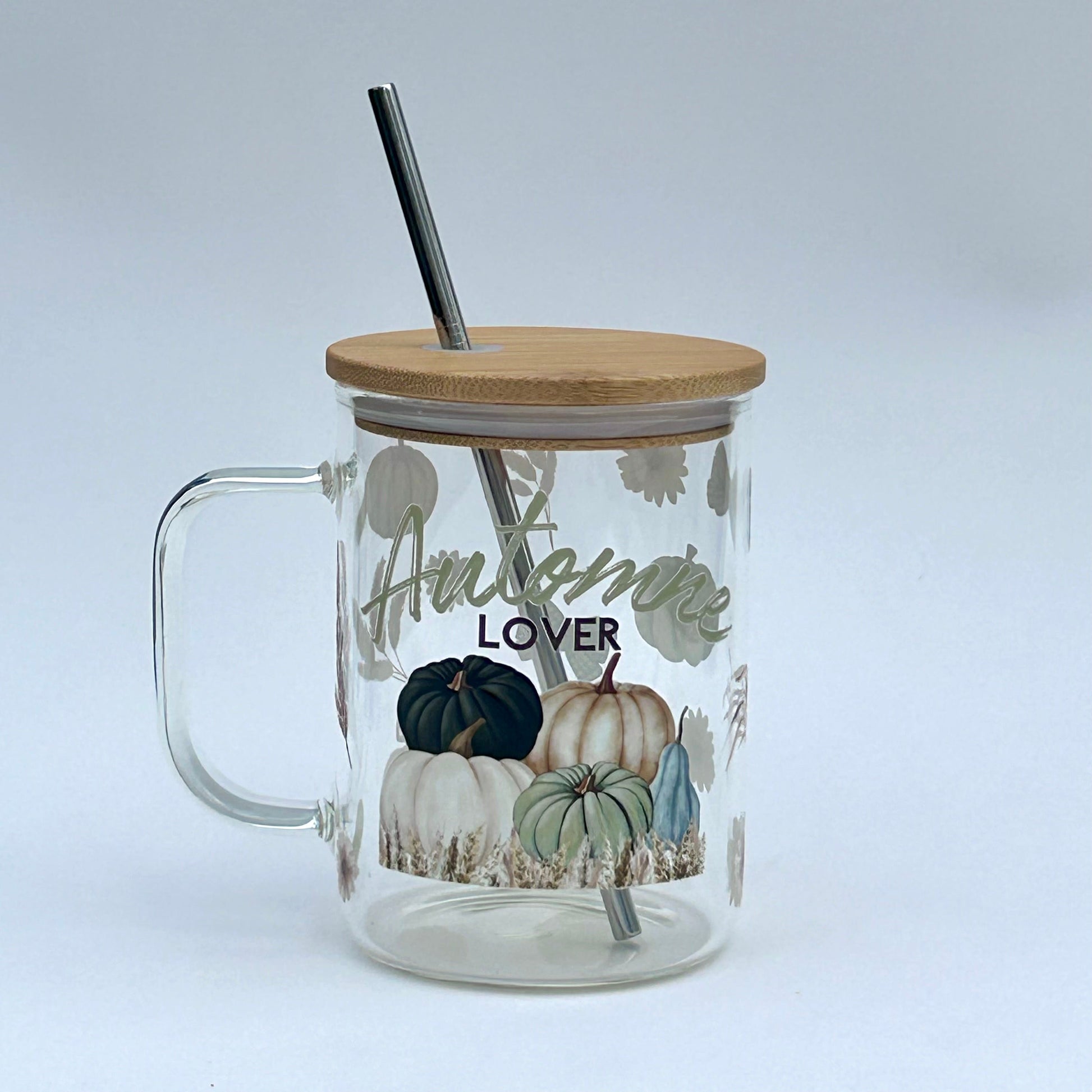 Tasse en verre avec couvercle et paille (17oz) - Automne Lover 🌾