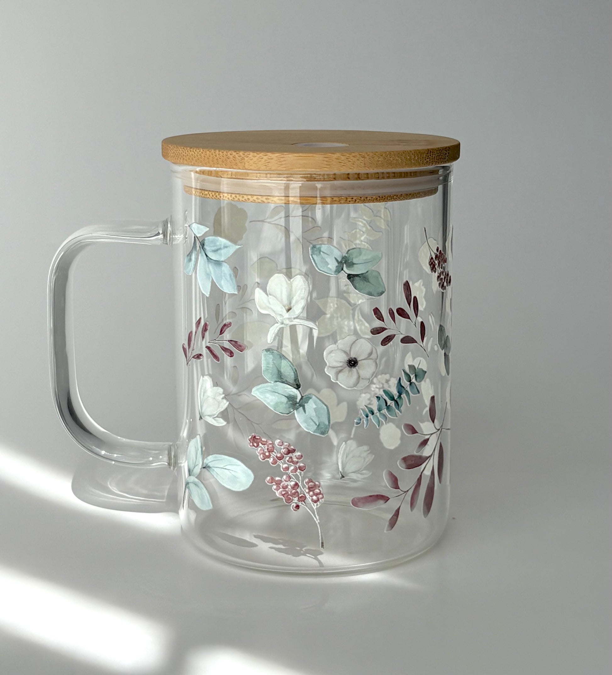 Tasse en verre avec couvercle et paille (17 oz) - Élégance florale 🌹✨