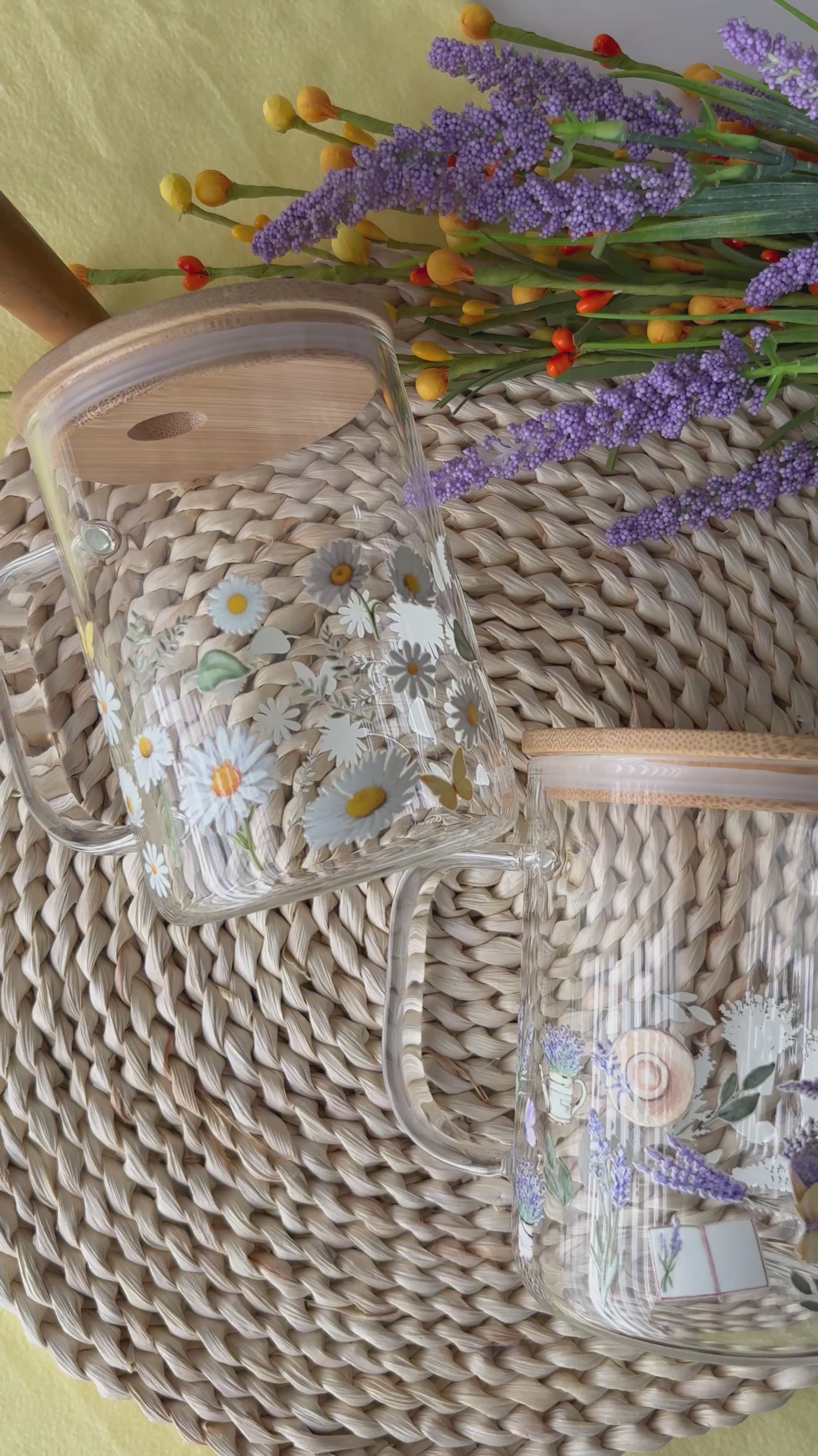 Tasse en verre avec couvercle et paille (17 oz) - Marguerite 🌼