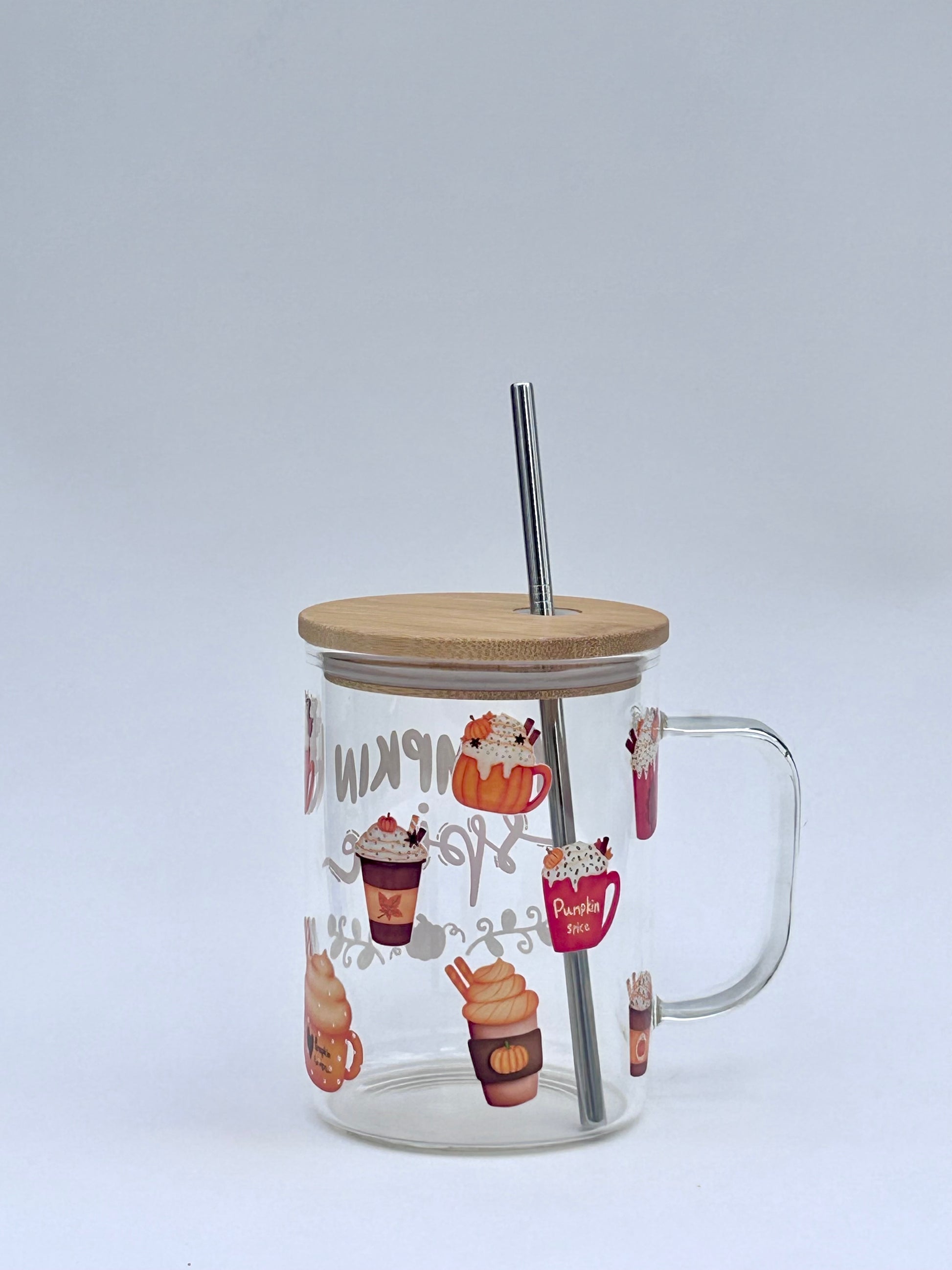 Tasse en verre avec couvercle et paille (17 oz) - Pumpkin spice 🎃