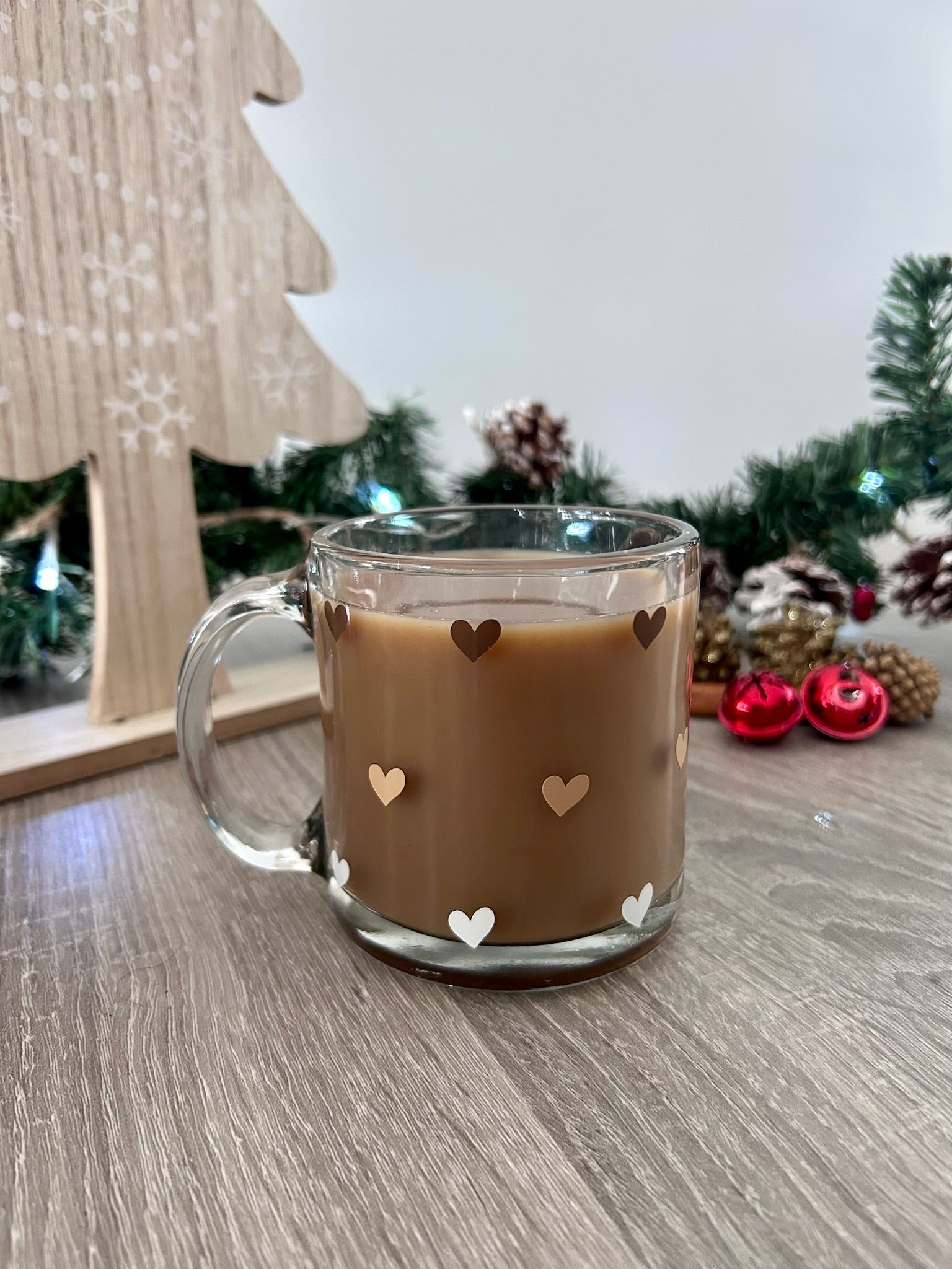 Tasse en verre avec couvercle et paille (17 oz) - Coeurs neutres 🤎