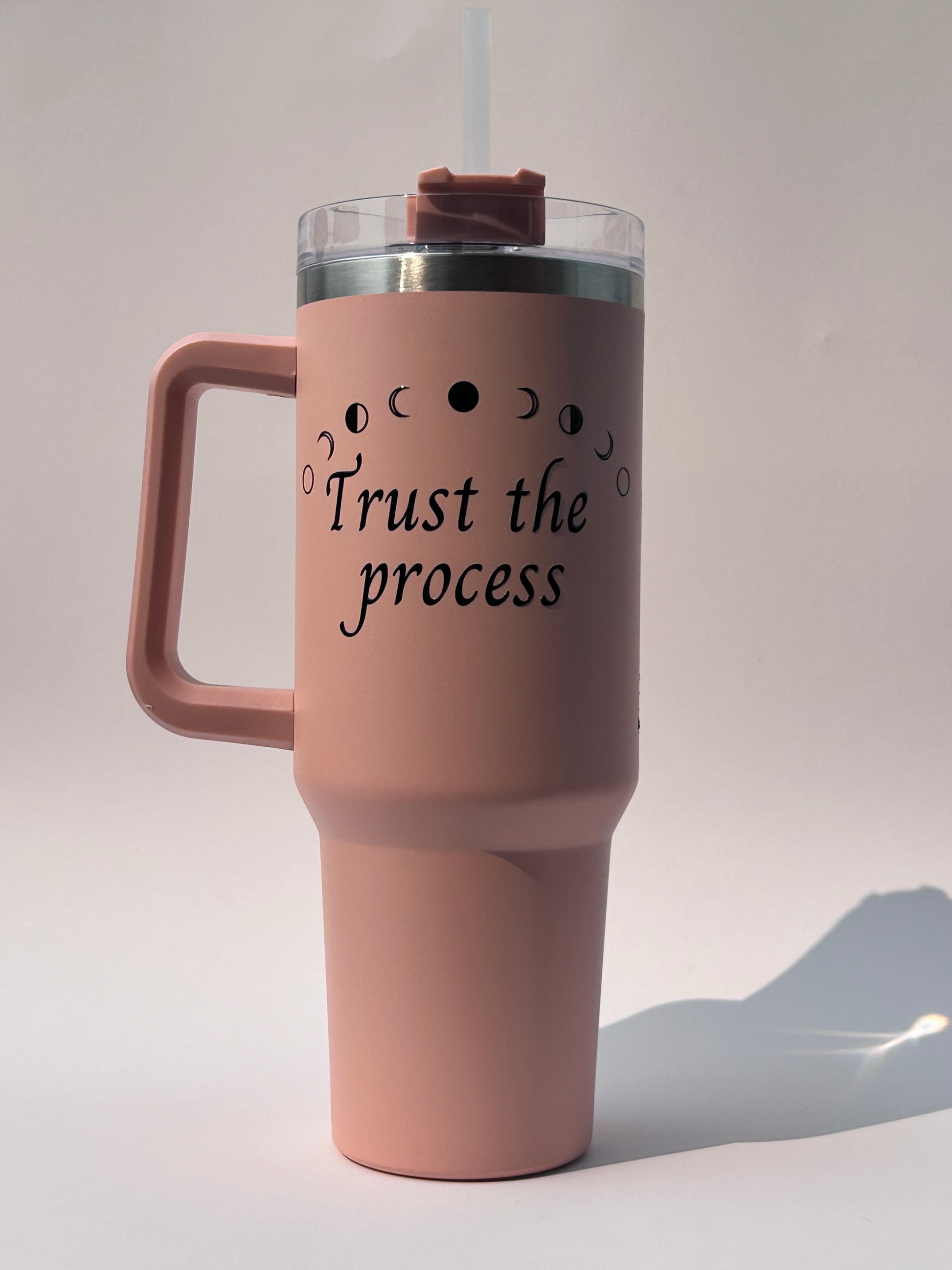 Tumbler isotherme rosée avec couvercle et paille (40 oz) - Trust the process 💫