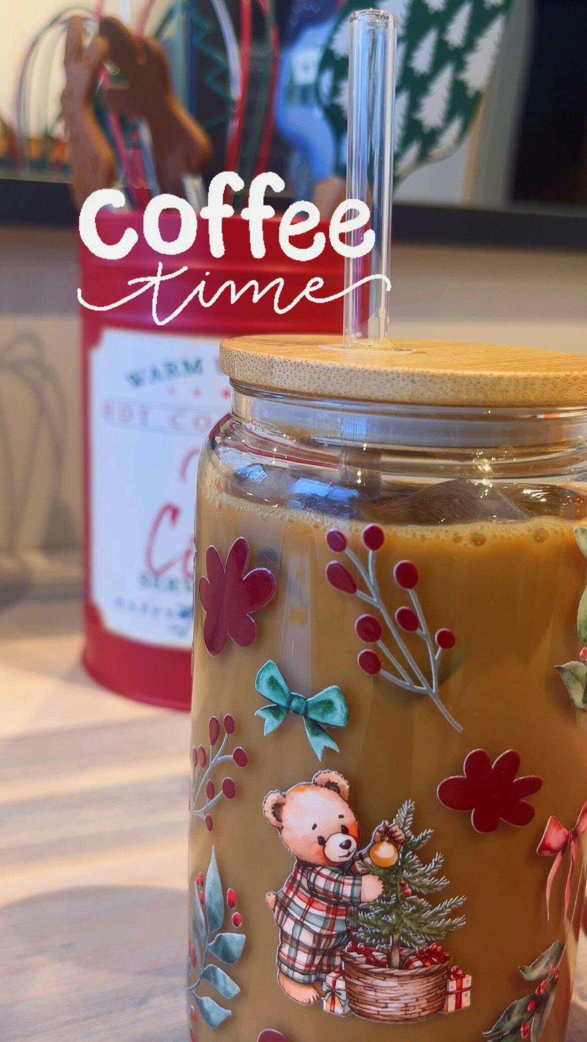 Tumbler en verre avec couvercle et paille (16 oz) - Douce magie đ§ž