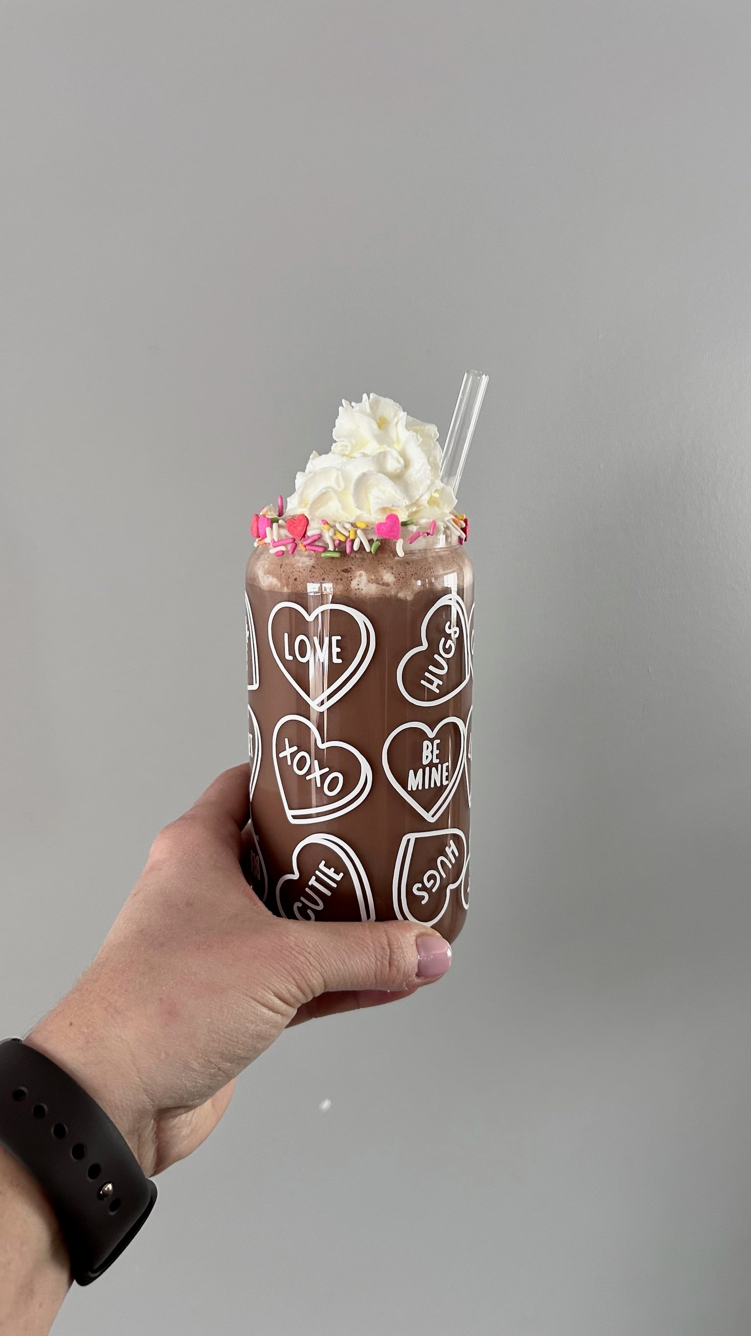 Tumbler en verre avec couvercle et paille (16 oz) - Be mine 💜