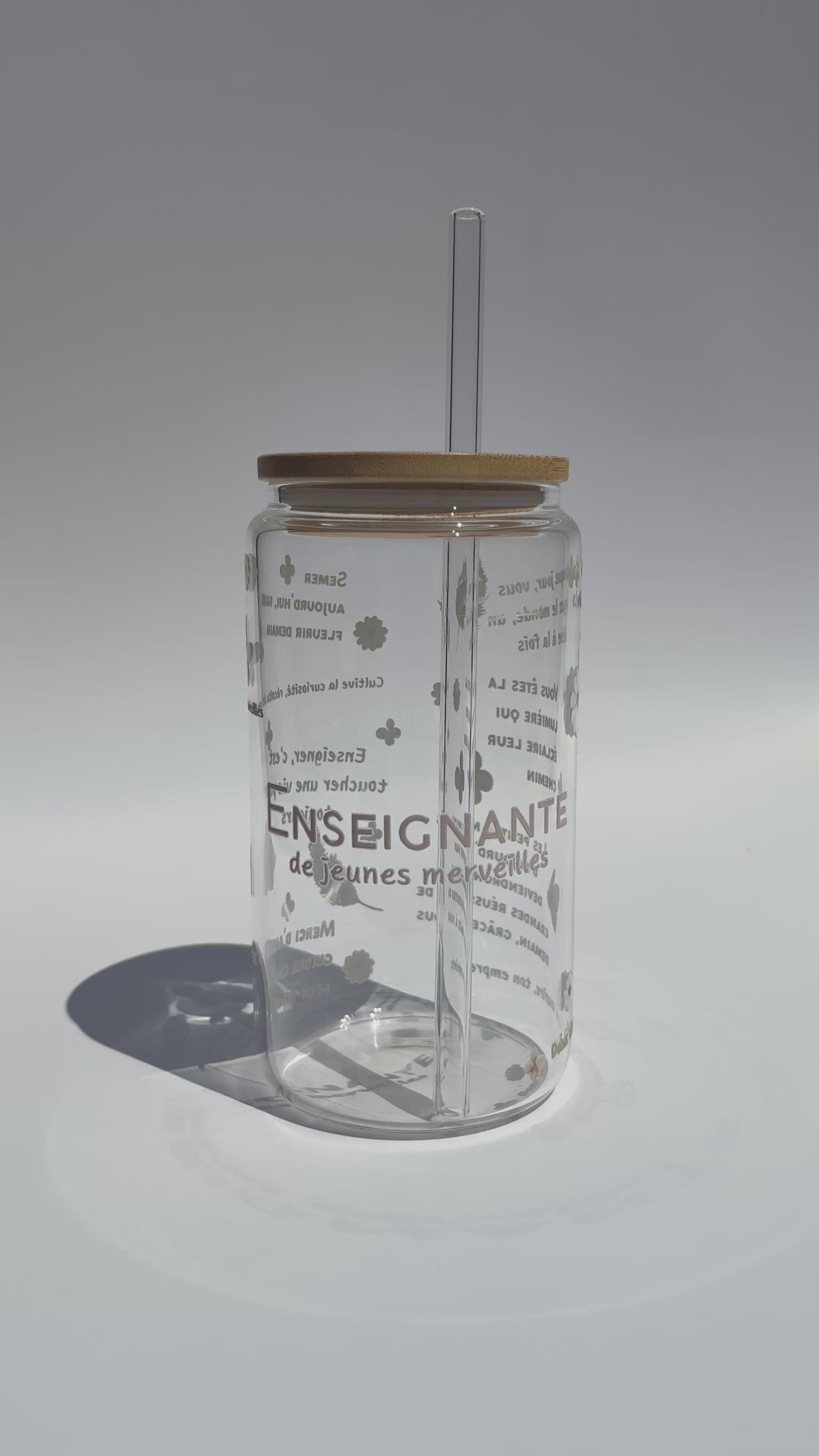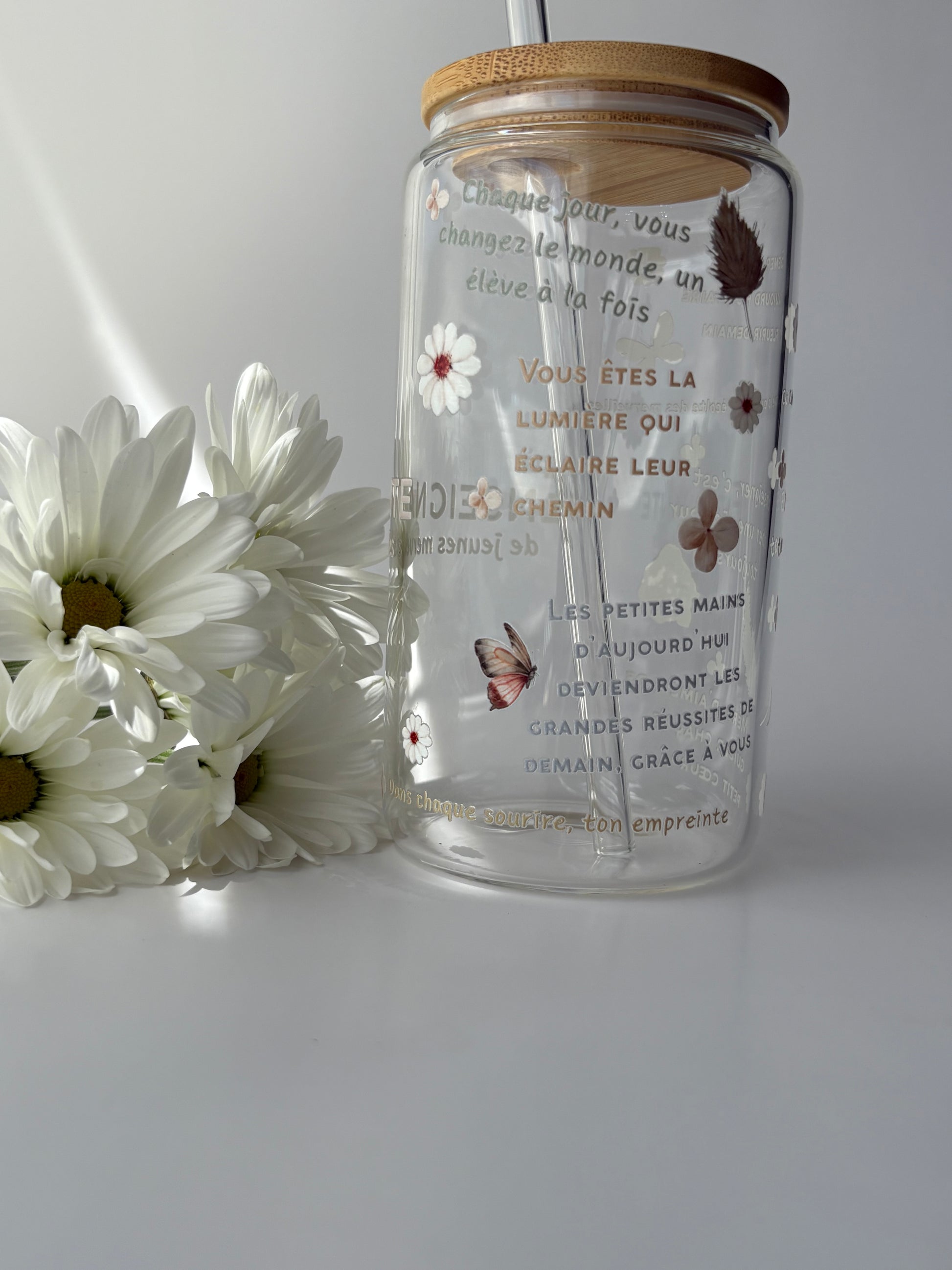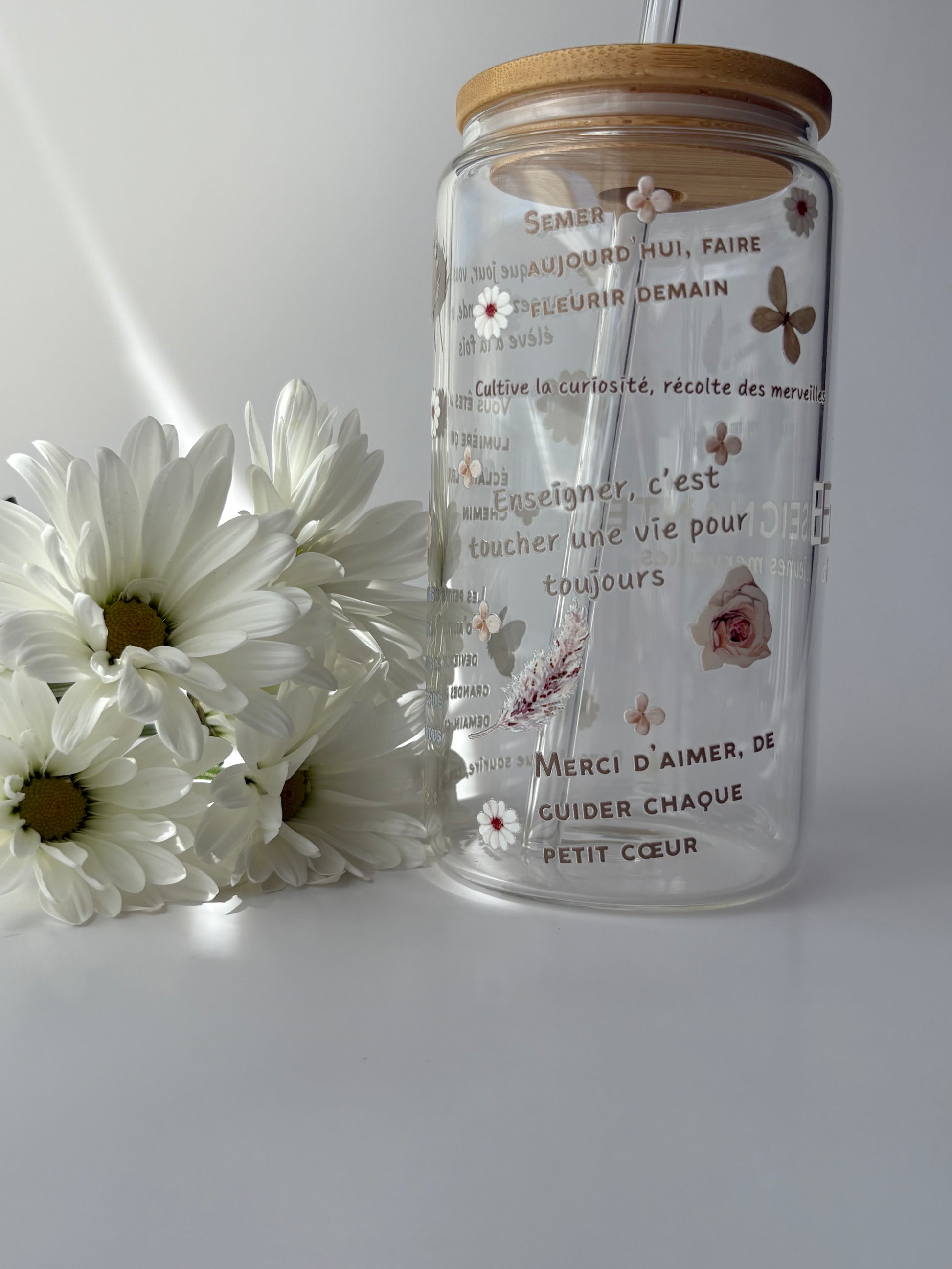 Montrez votre gratitude avec style avec notre tumbler en verre d'appréciation personnalisé pour enseignants et éducateurs, le moyen idéal pour honorer le dévouement et l'impact de ceux qui nous inspirent. Qu'ils sirotent un café, un thé ou un smoothie rafraîchissant, ce gobelet ajoute une touche personnalisée à leur routine quotidienne. Fabriqué à partir de verre durable de haute qualité, il est conçu pour garder leurs boissons au frais tout en leur rappelant constamment à quel point ils ou elles sont apprécié.es.