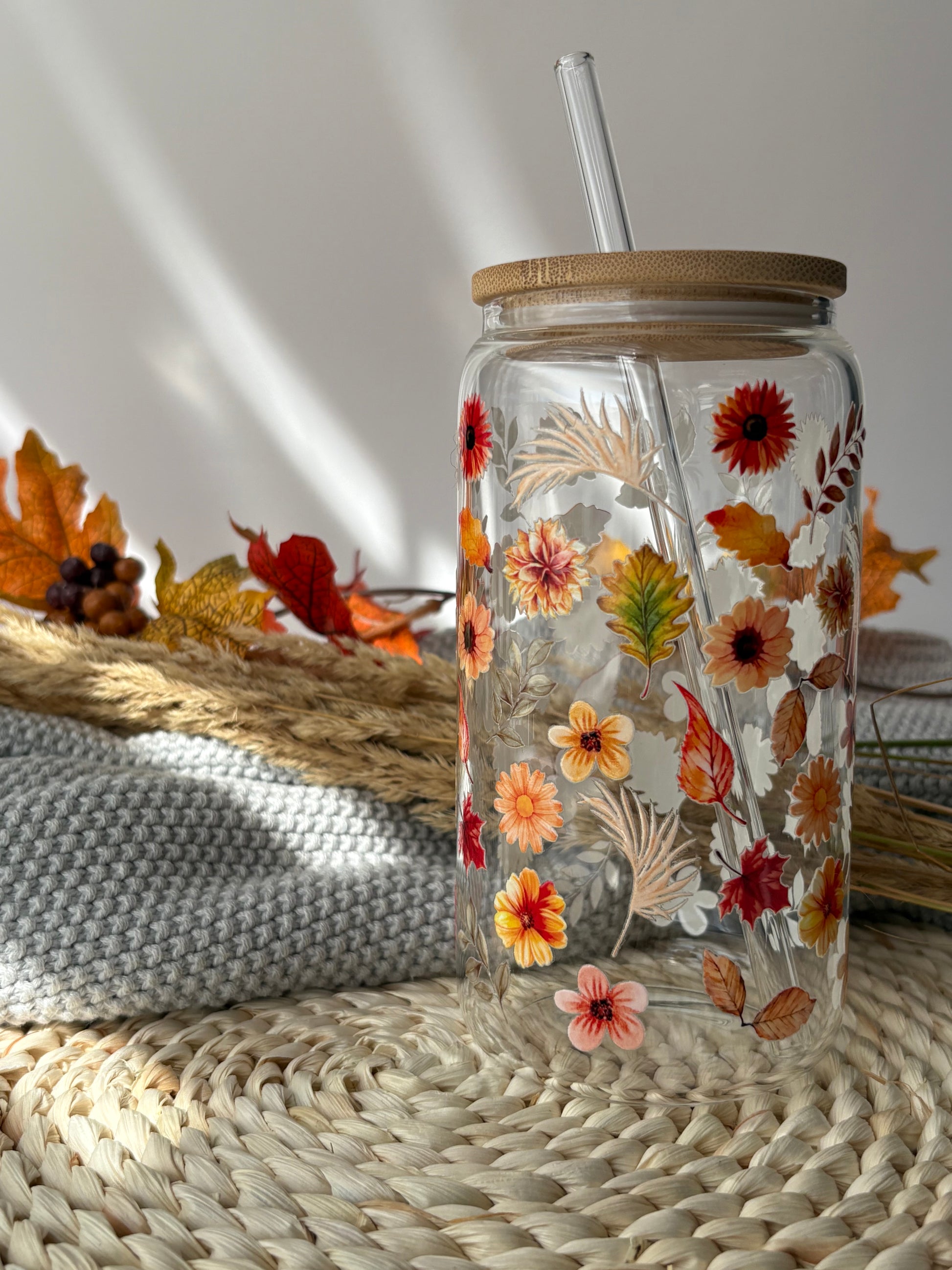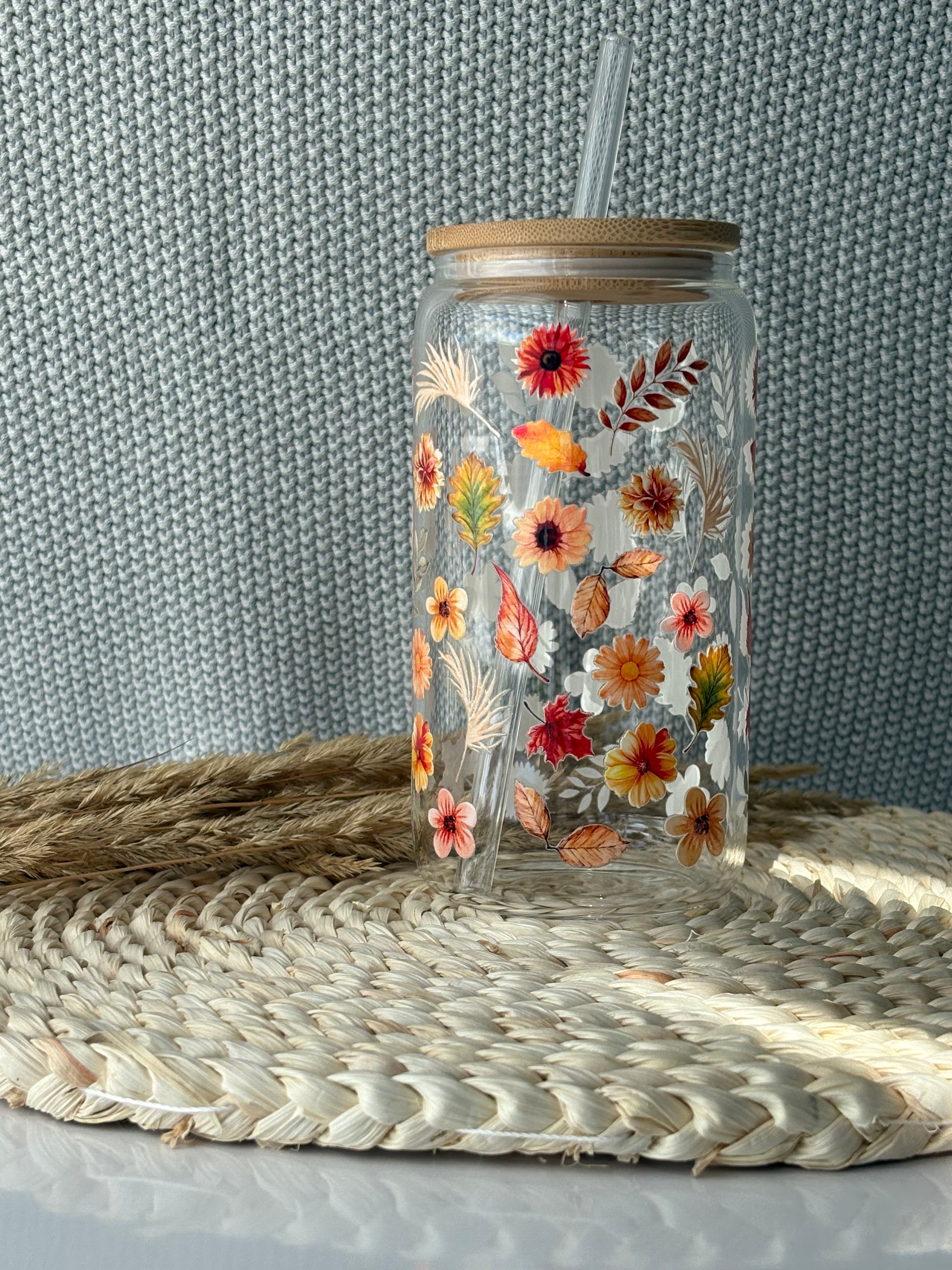 Tumbler en verre avec couvercle et paille (16 oz) - Jardins d'automne 🌻🌾🍂