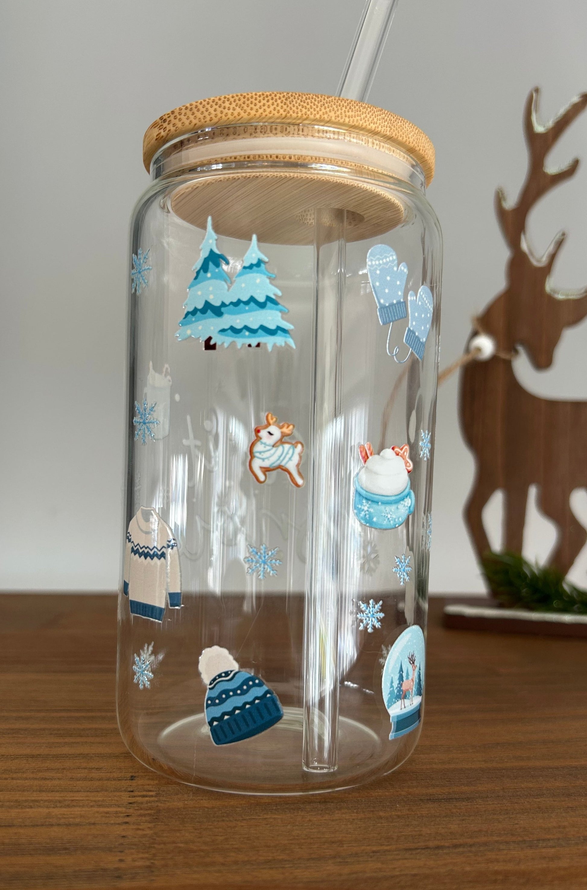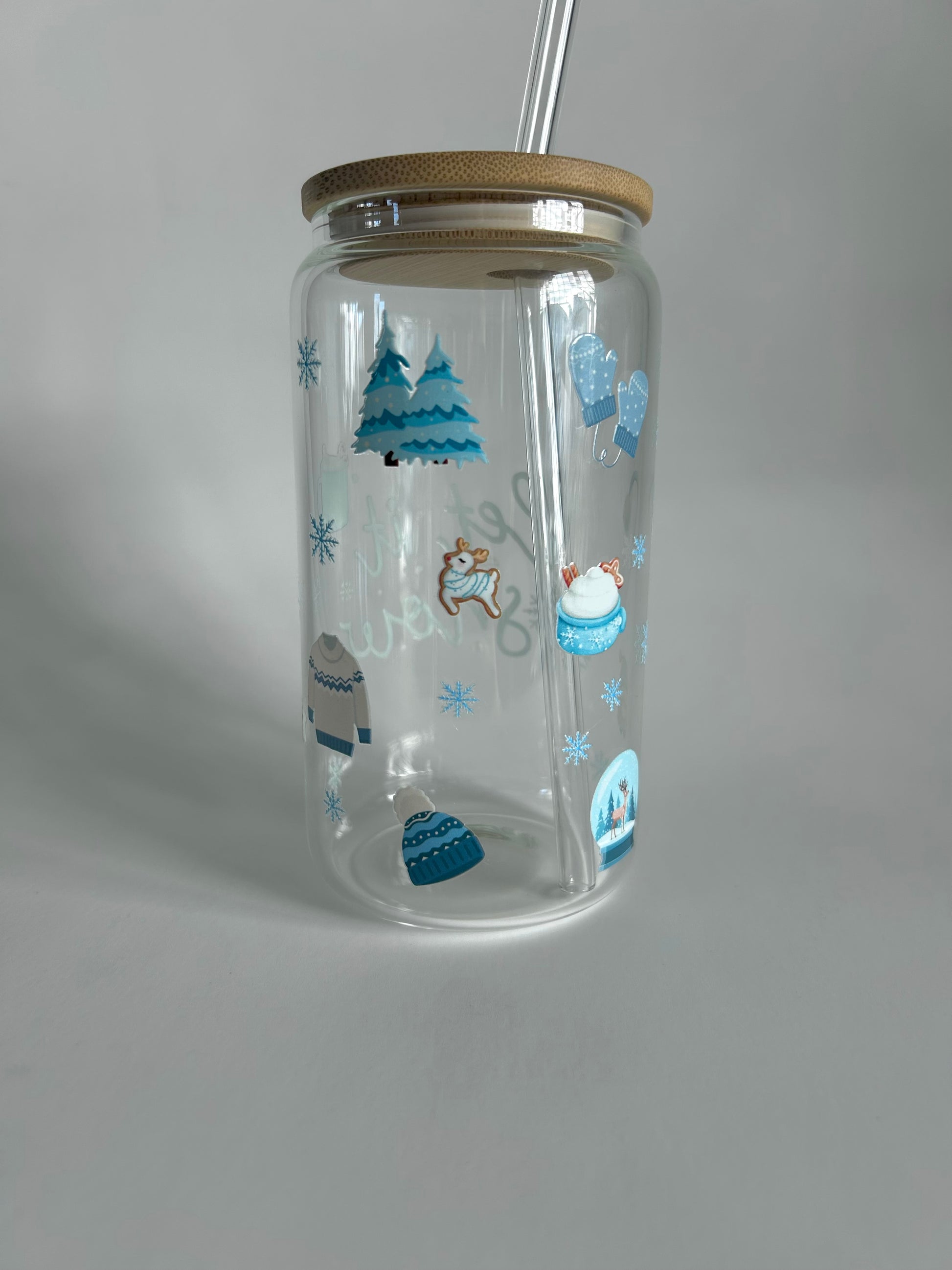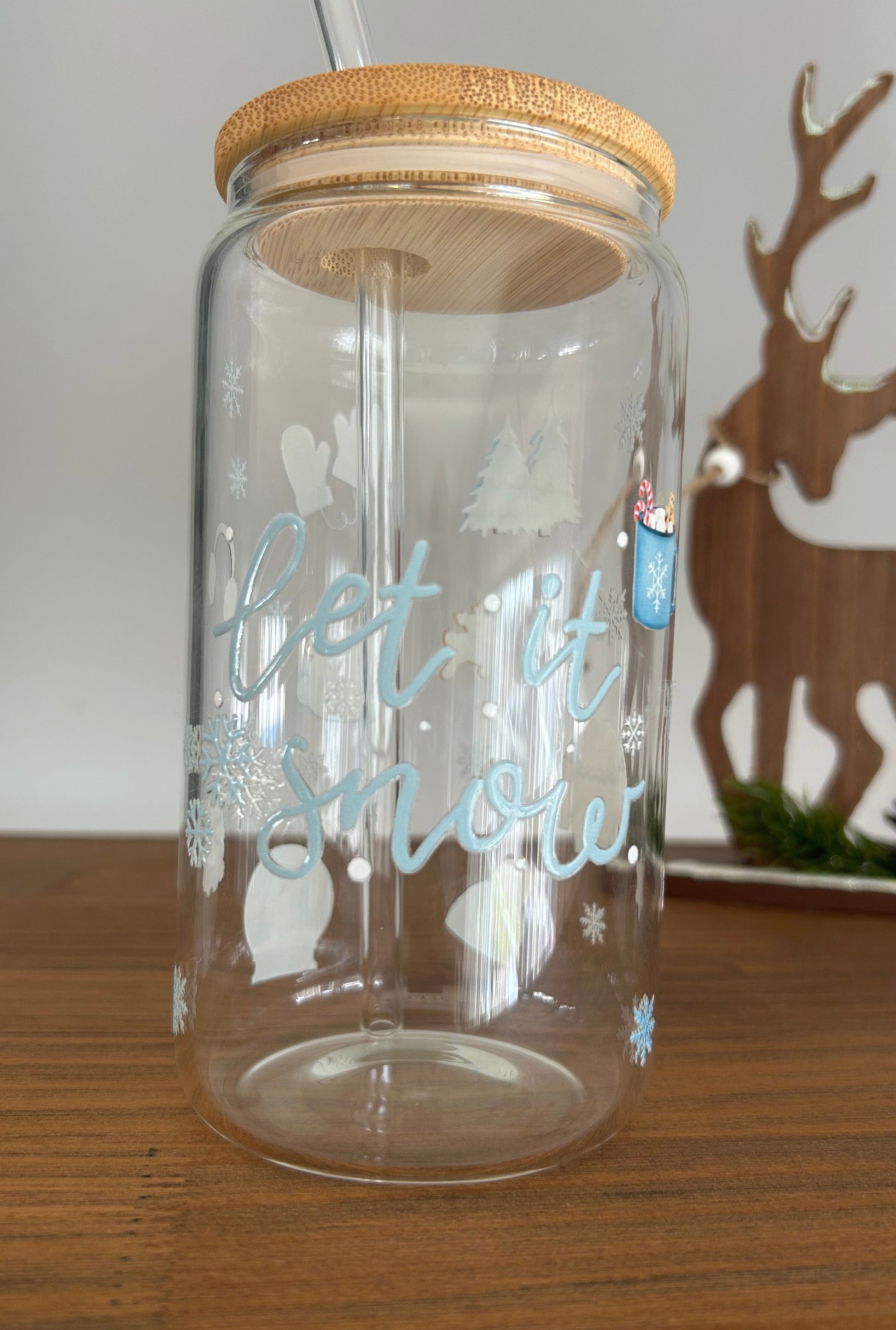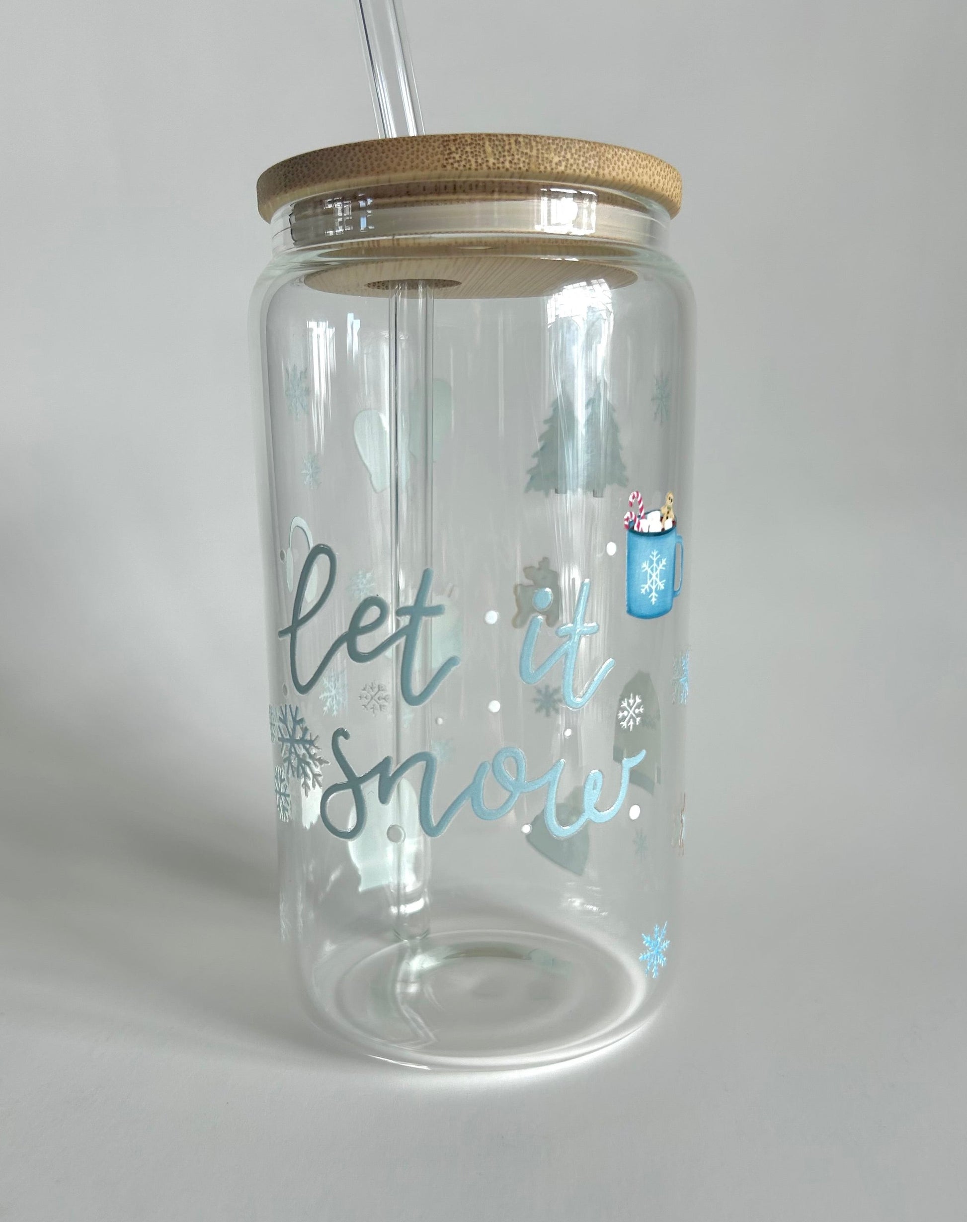 Tumbler en verre avec couvercle et paille (16 oz) - Let it snow ☃️