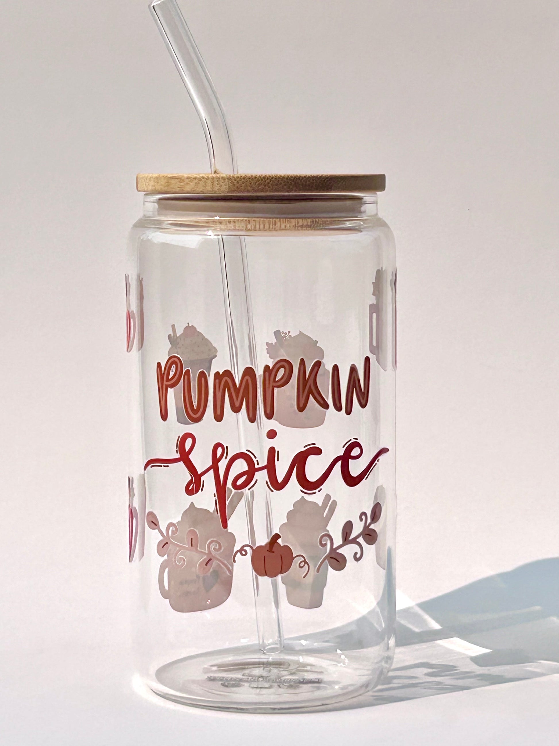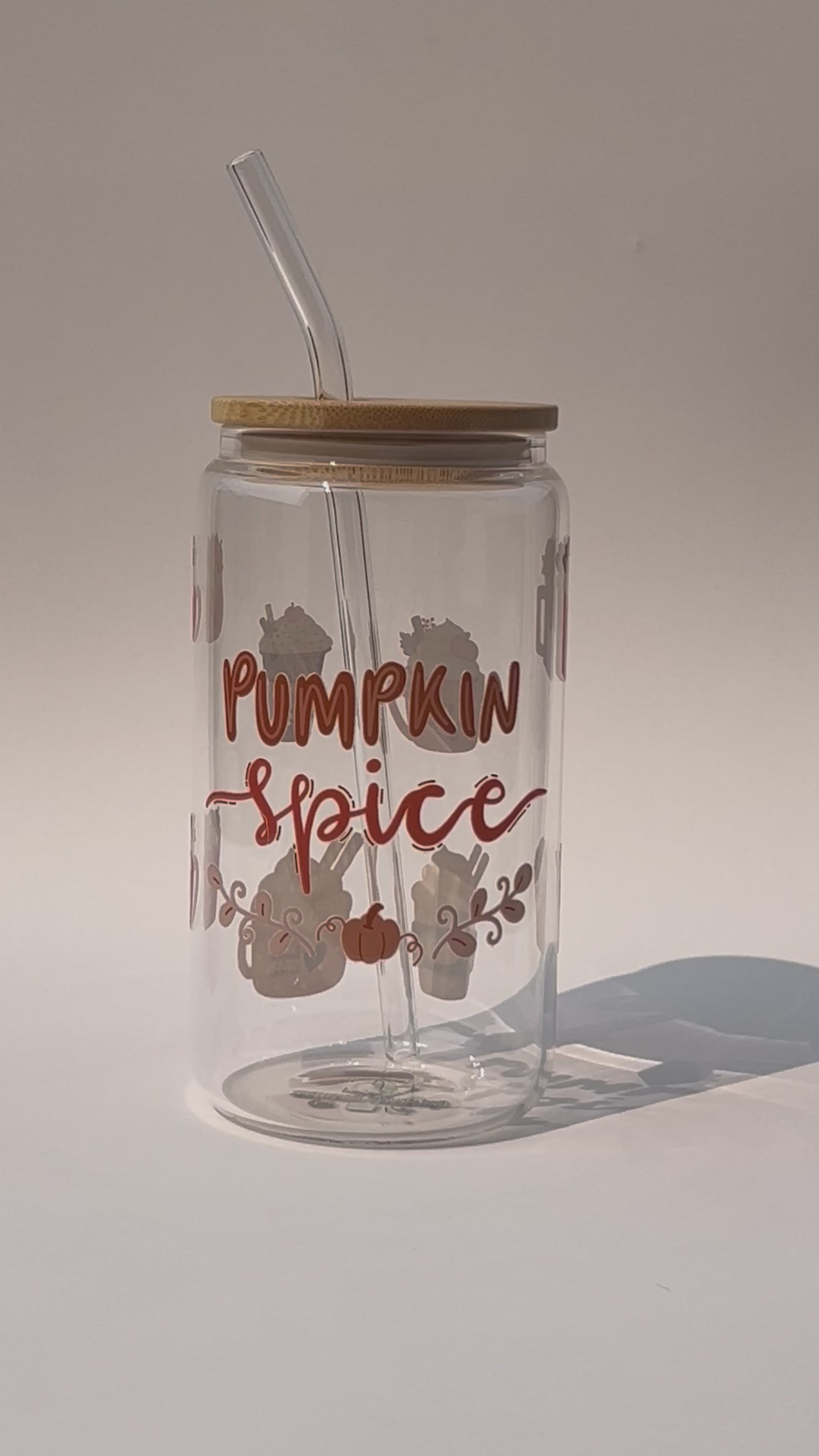 Tumbler en verre avec couvercle et paille (16 oz) - Pumpkin spice 🎃