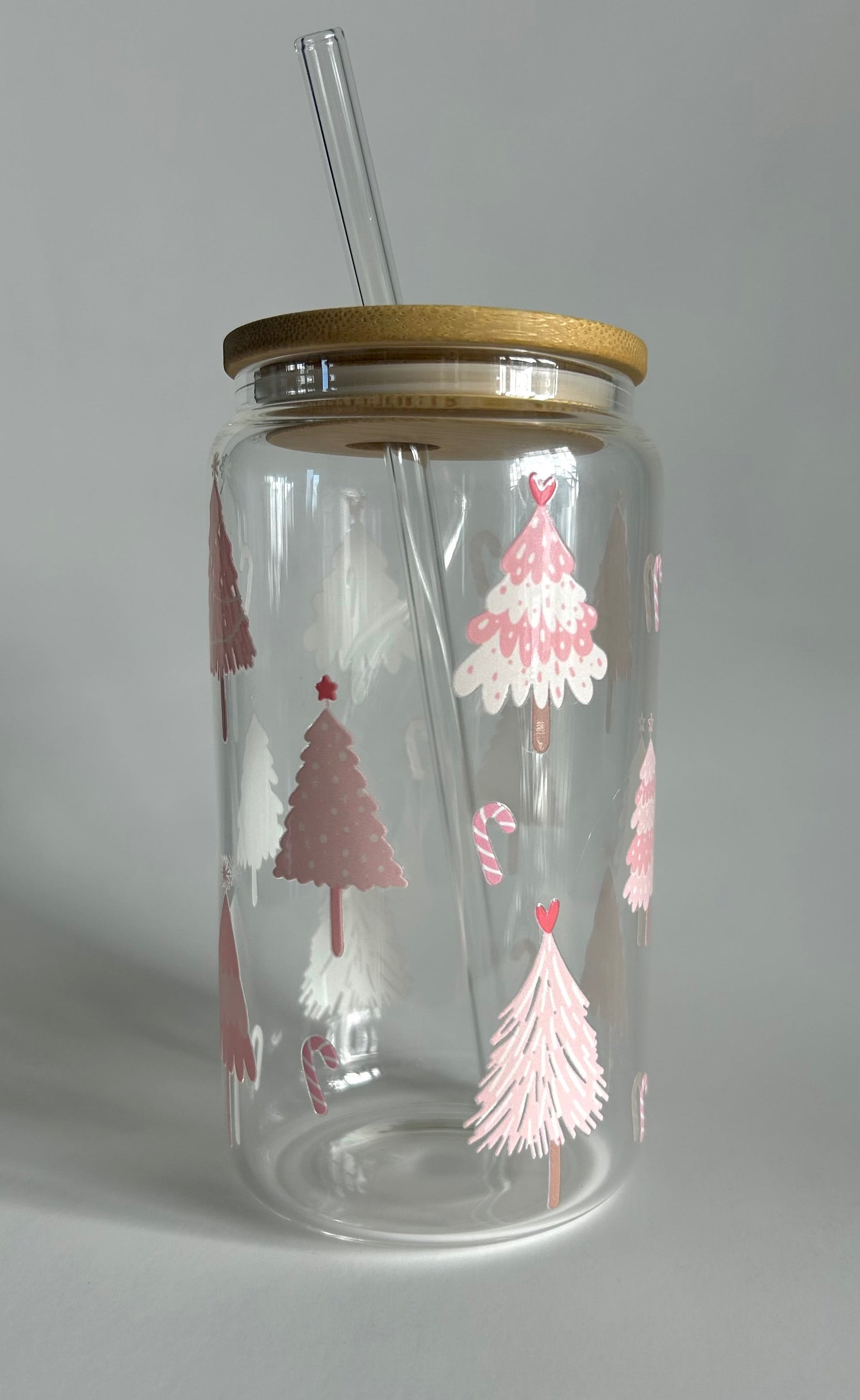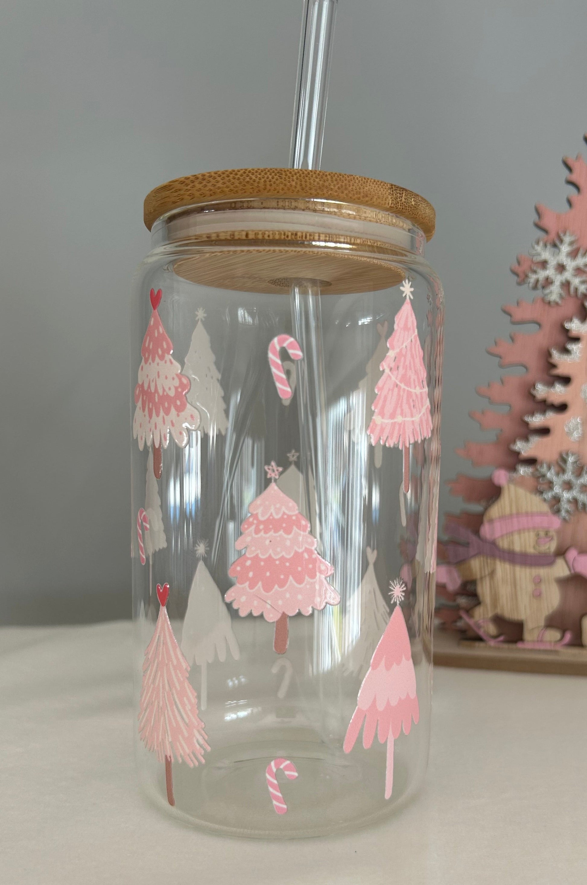Tumbler en verre avec couvercle et paille (16 oz) - Sapins rose 🌲🩷