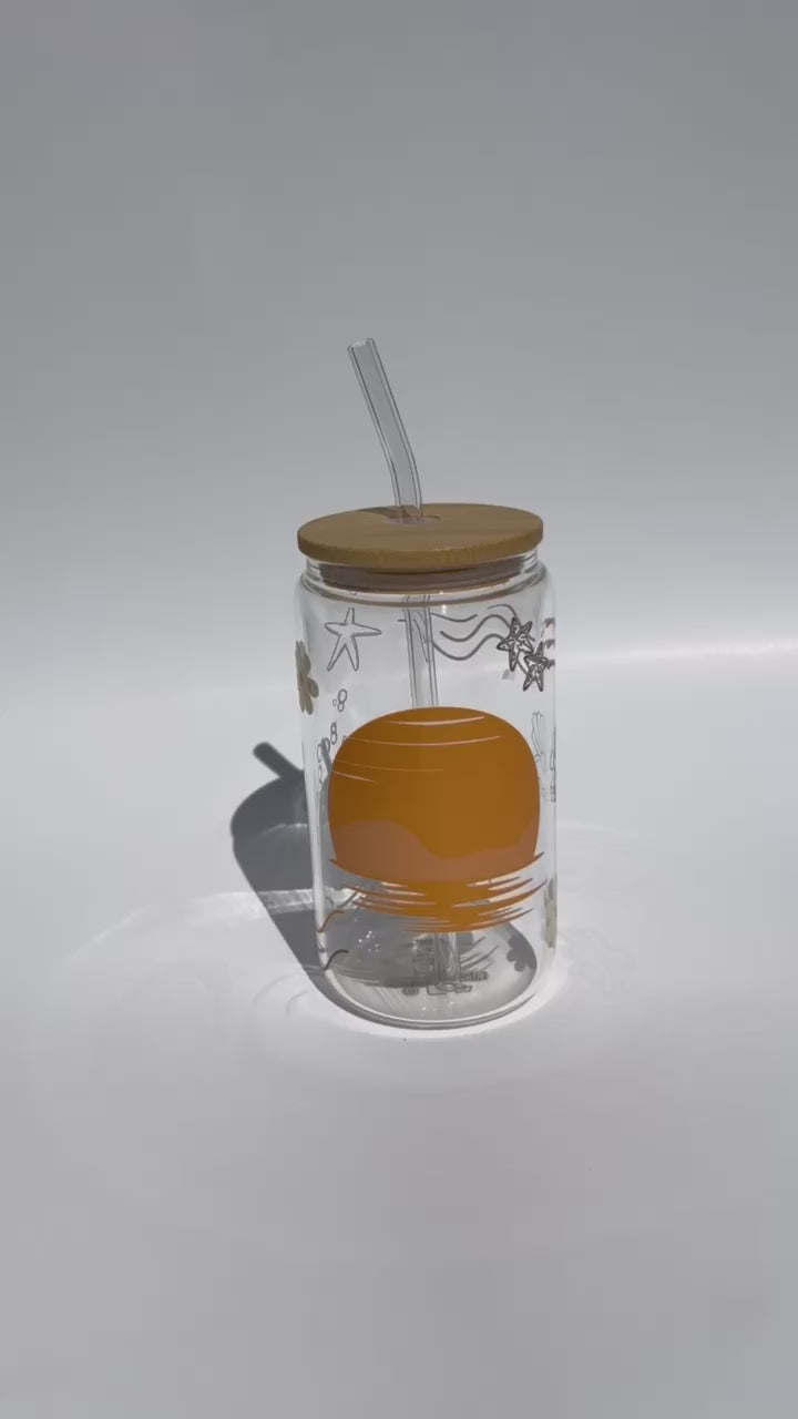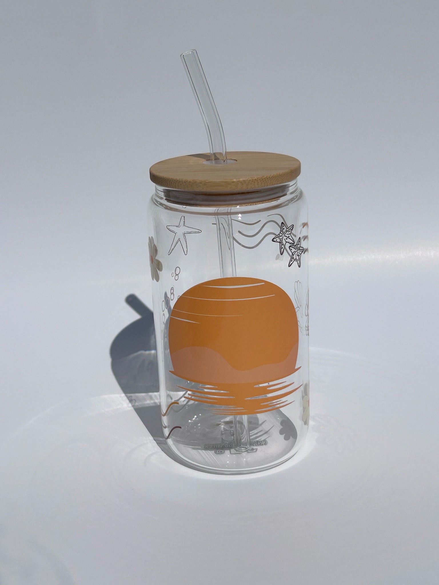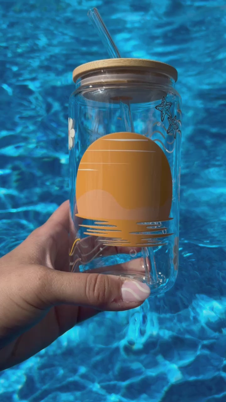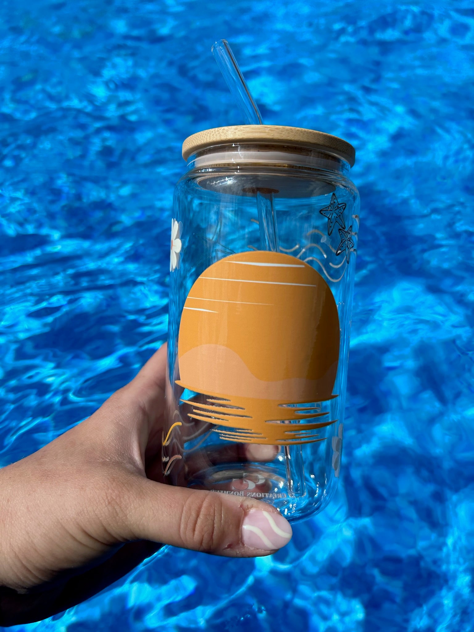 Tumbler en verre avec couvercle et paille (16 oz) - Sunset 🌅