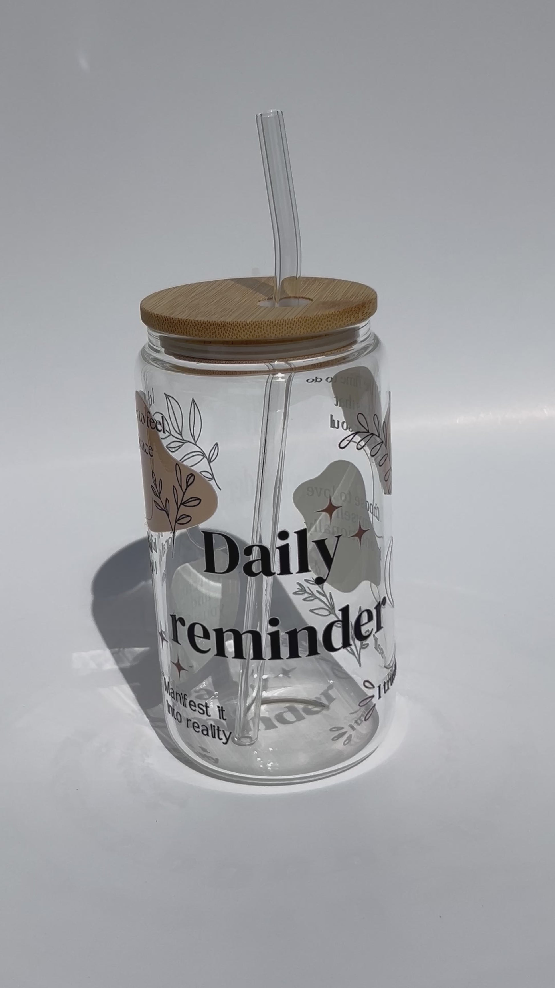 Tumbler en verre avec couvercle et paille (16 oz) - Daily reminder 💡