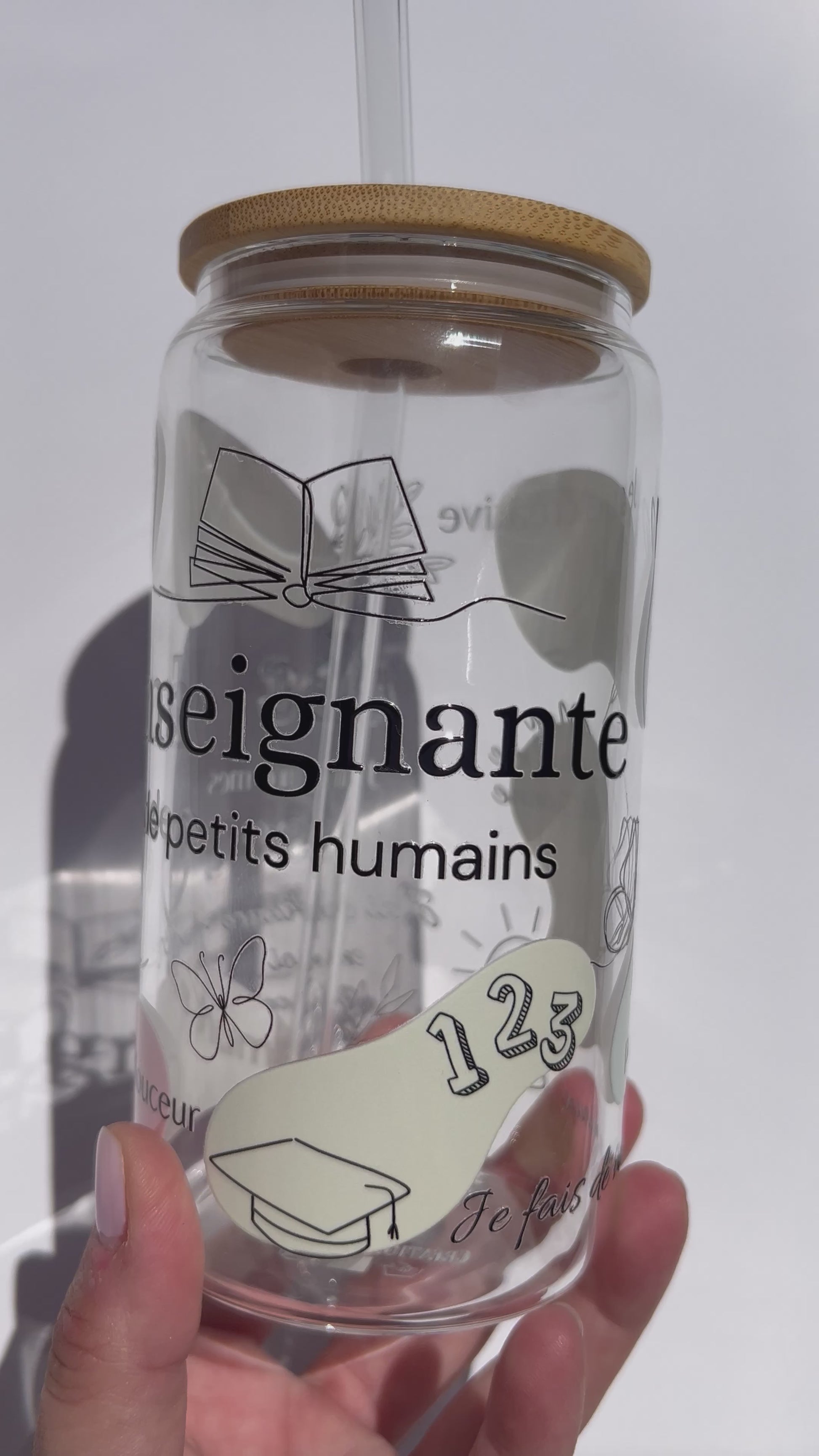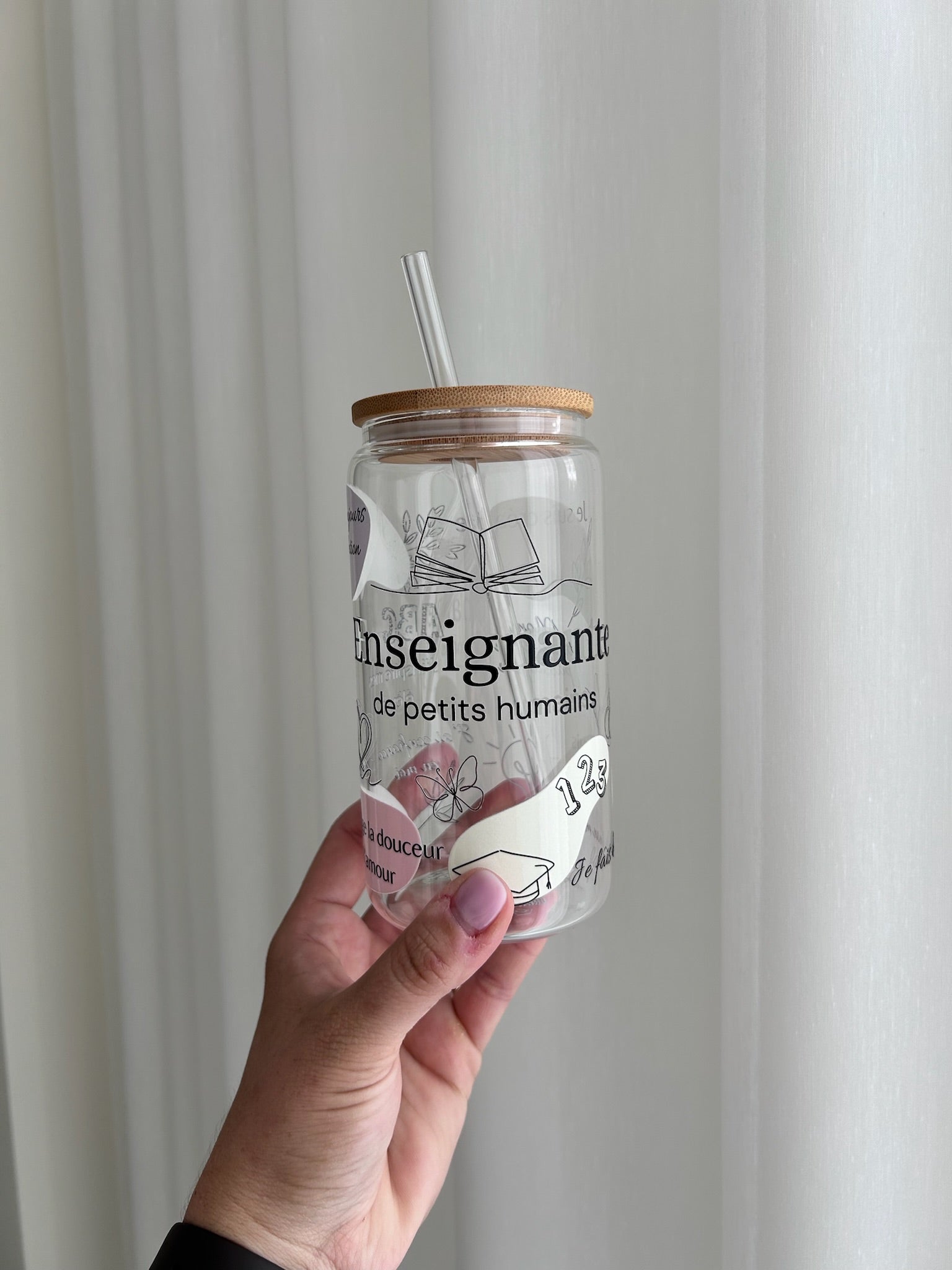 Tumbler en verre avec couvercle et paille (16 oz) - Enseignante de petits humains V1 📚